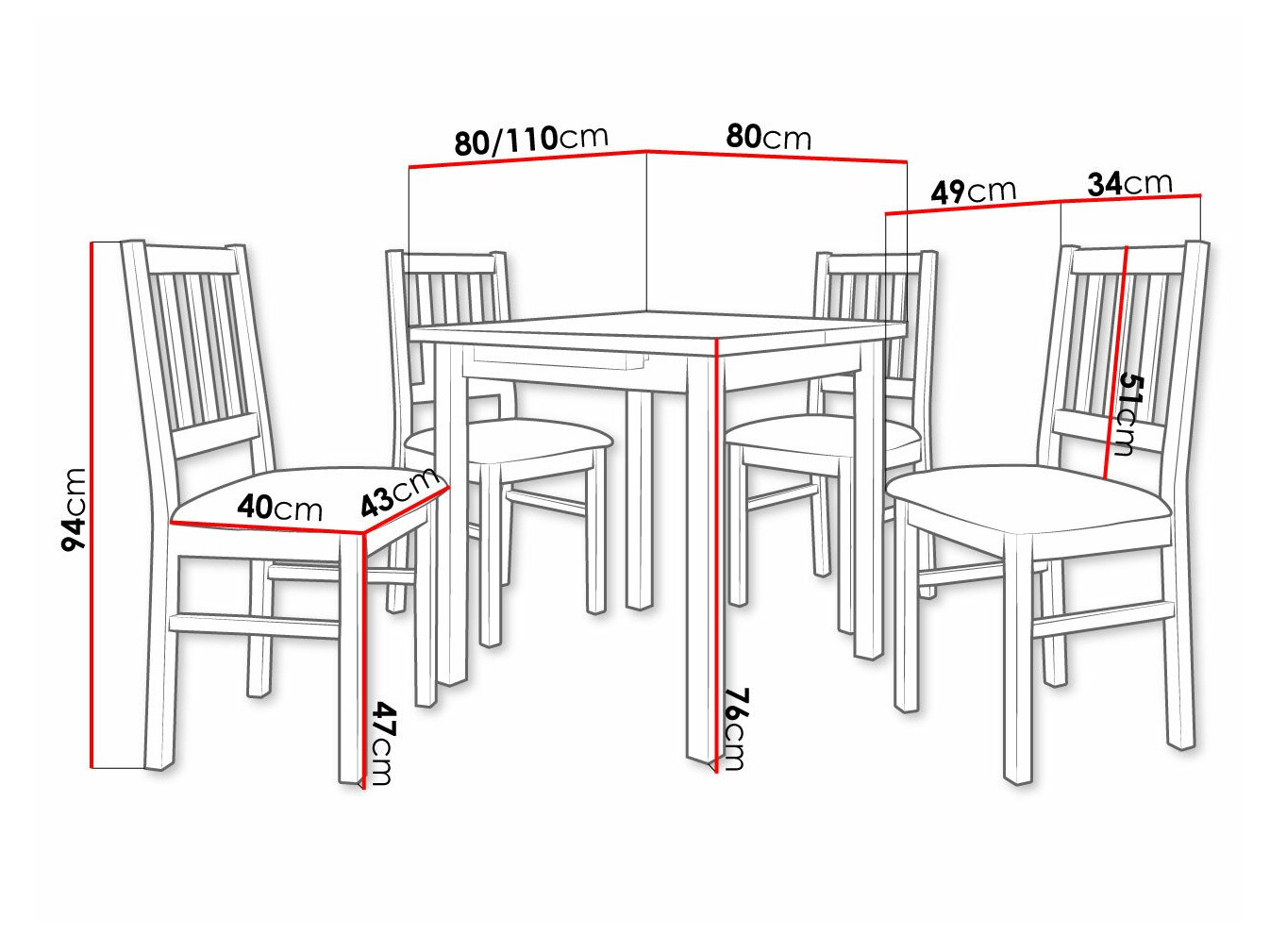 Afmetingen van de stoel: