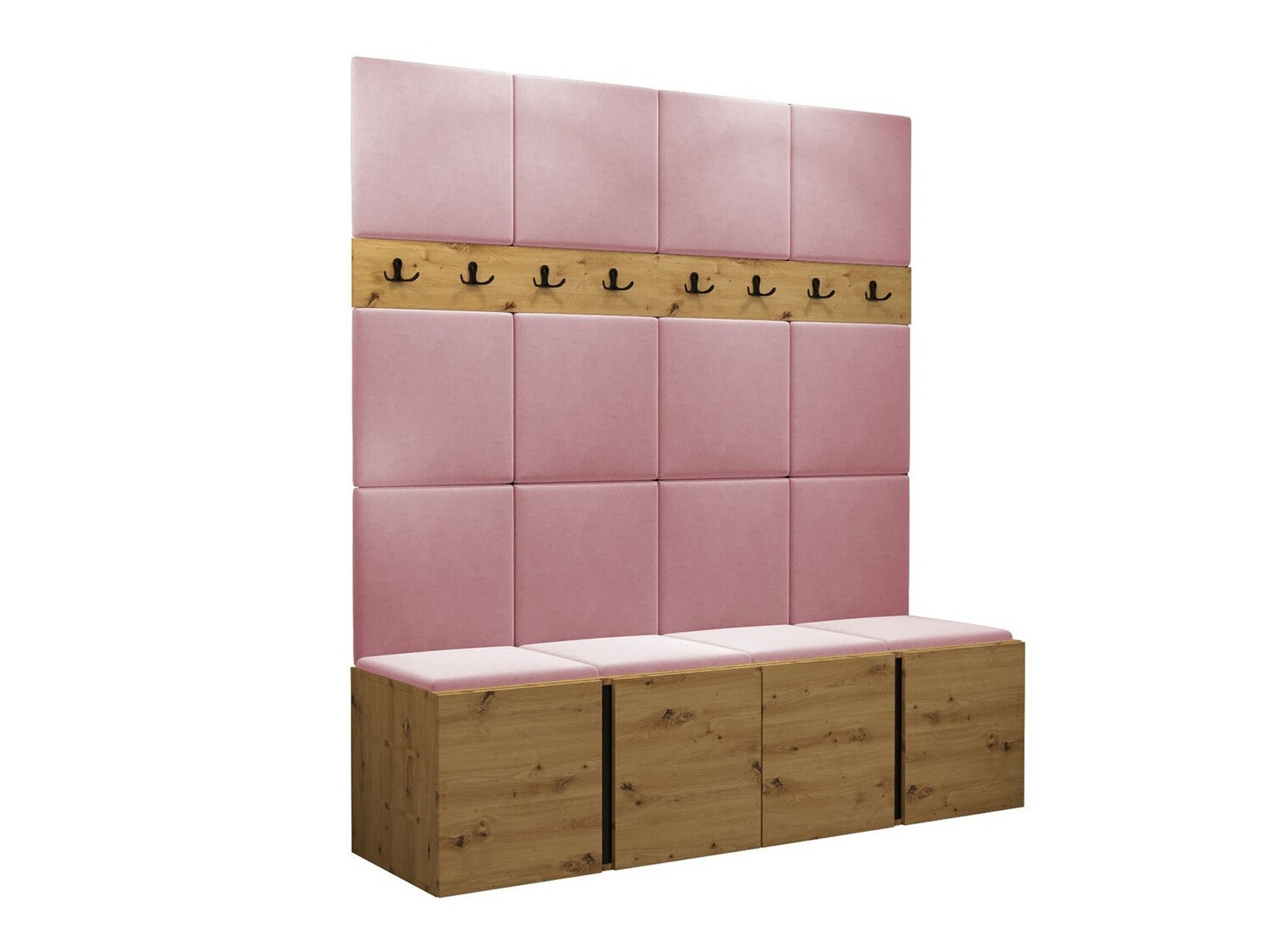 Het paneel is gemaakt van een 8 mm dikke plaat die de wandbevestiging verbetert. De zachtheid en vorm worden gegarandeerd door een 3 cm dikke synthetische stof en de stof waarmee deze is bekleed. U kunt de stof van het paneel kiezen uit een breed scala aan kleuren, zodat u zeker iets vindt dat bij uw interieur past.