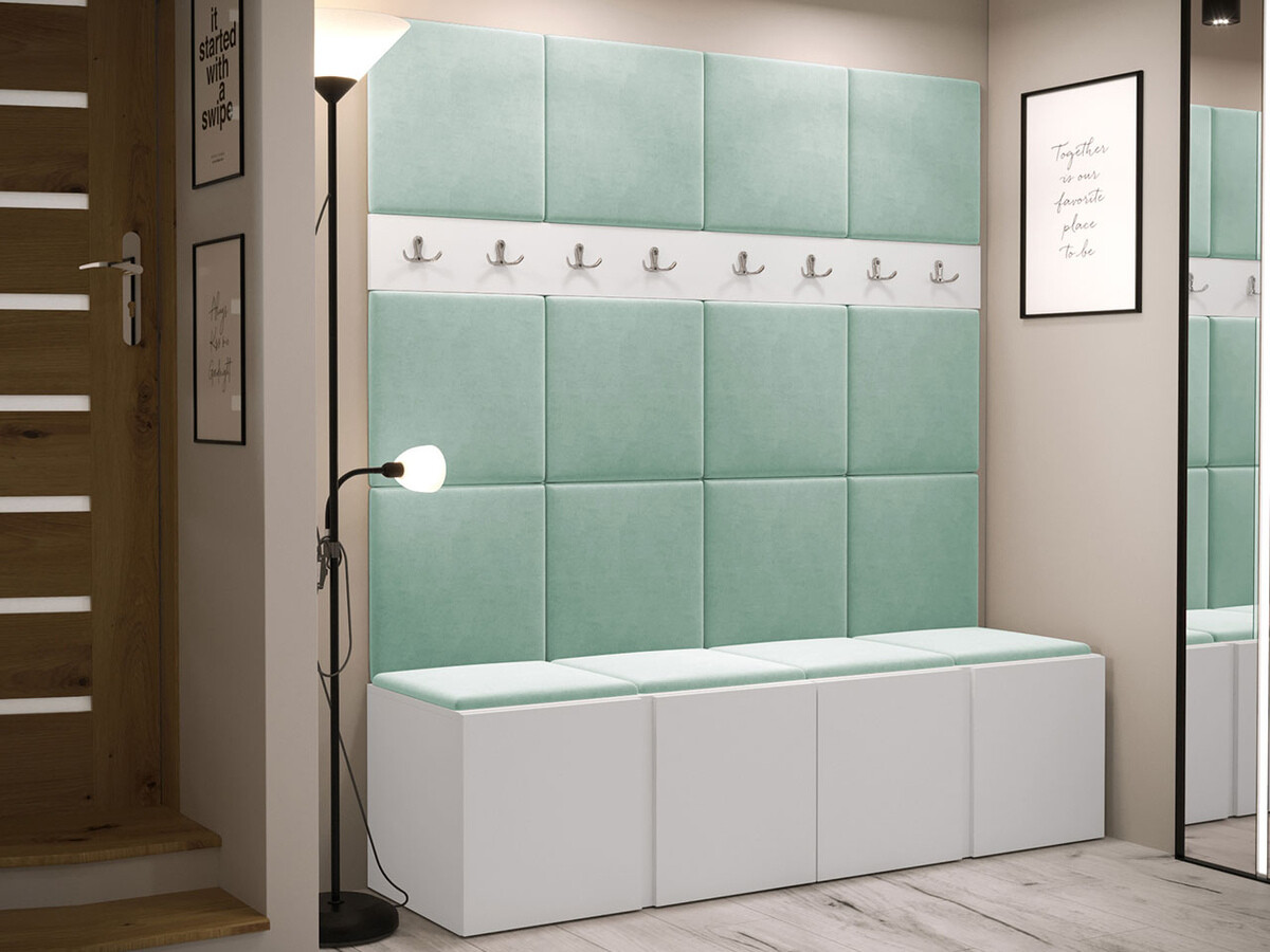 Het paneel is gemaakt van een 8 mm dikke plaat die de wandbevestiging verbetert. De zachtheid en vorm worden gegarandeerd door een 3 cm dikke synthetische stof en de stof waarmee deze is bekleed. U kunt de stof van het paneel kiezen uit een breed scala aan kleuren, zodat u zeker iets vindt dat bij uw interieur past.
