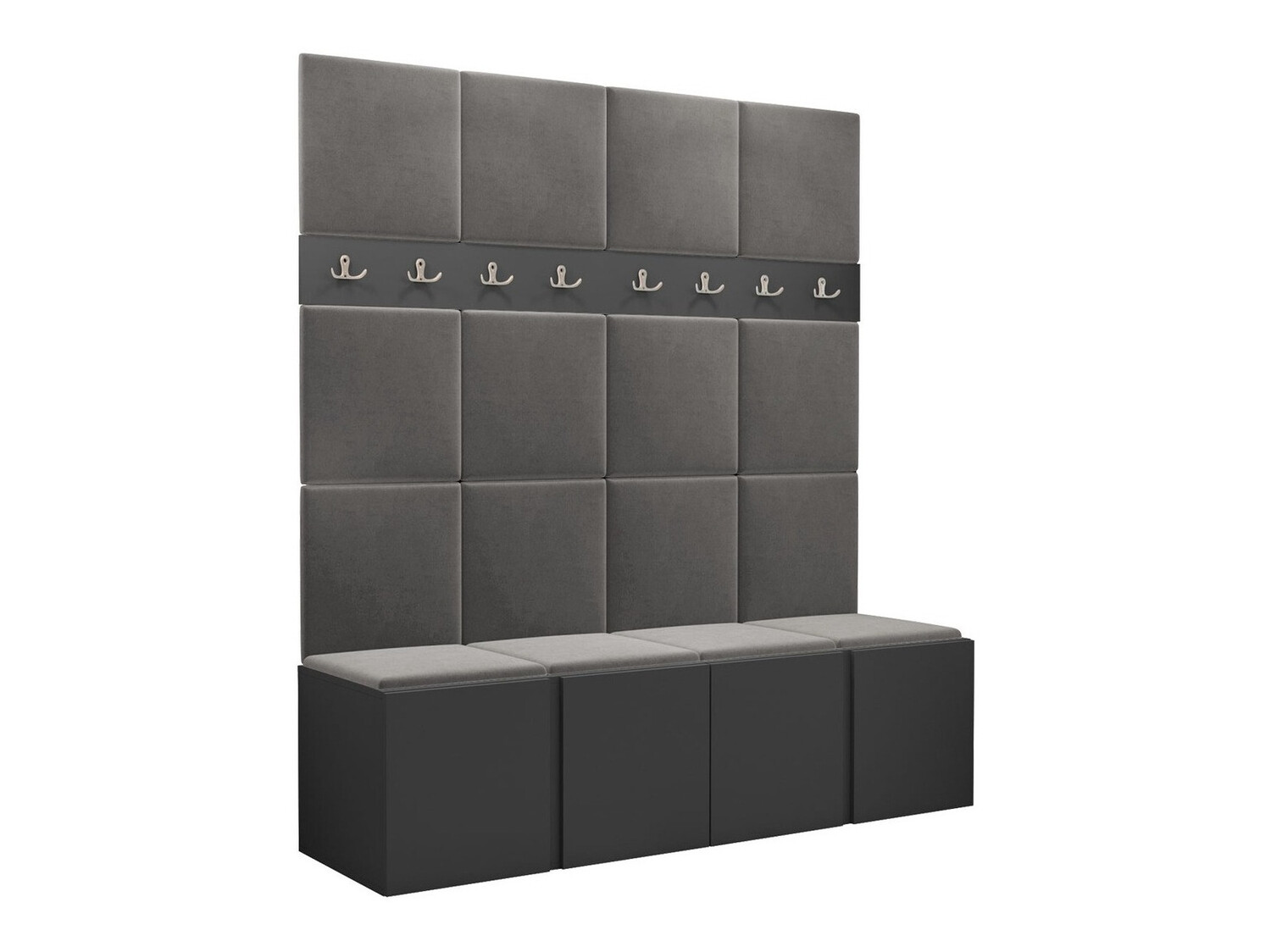 Het paneel is gemaakt van een 8 mm dikke plaat die de wandbevestiging verbetert. De zachtheid en vorm worden gegarandeerd door een 3 cm dikke synthetische stof en de stof waarmee deze is bekleed. U kunt de stof van het paneel kiezen uit een breed scala aan kleuren, zodat u zeker iets vindt dat bij uw interieur past.