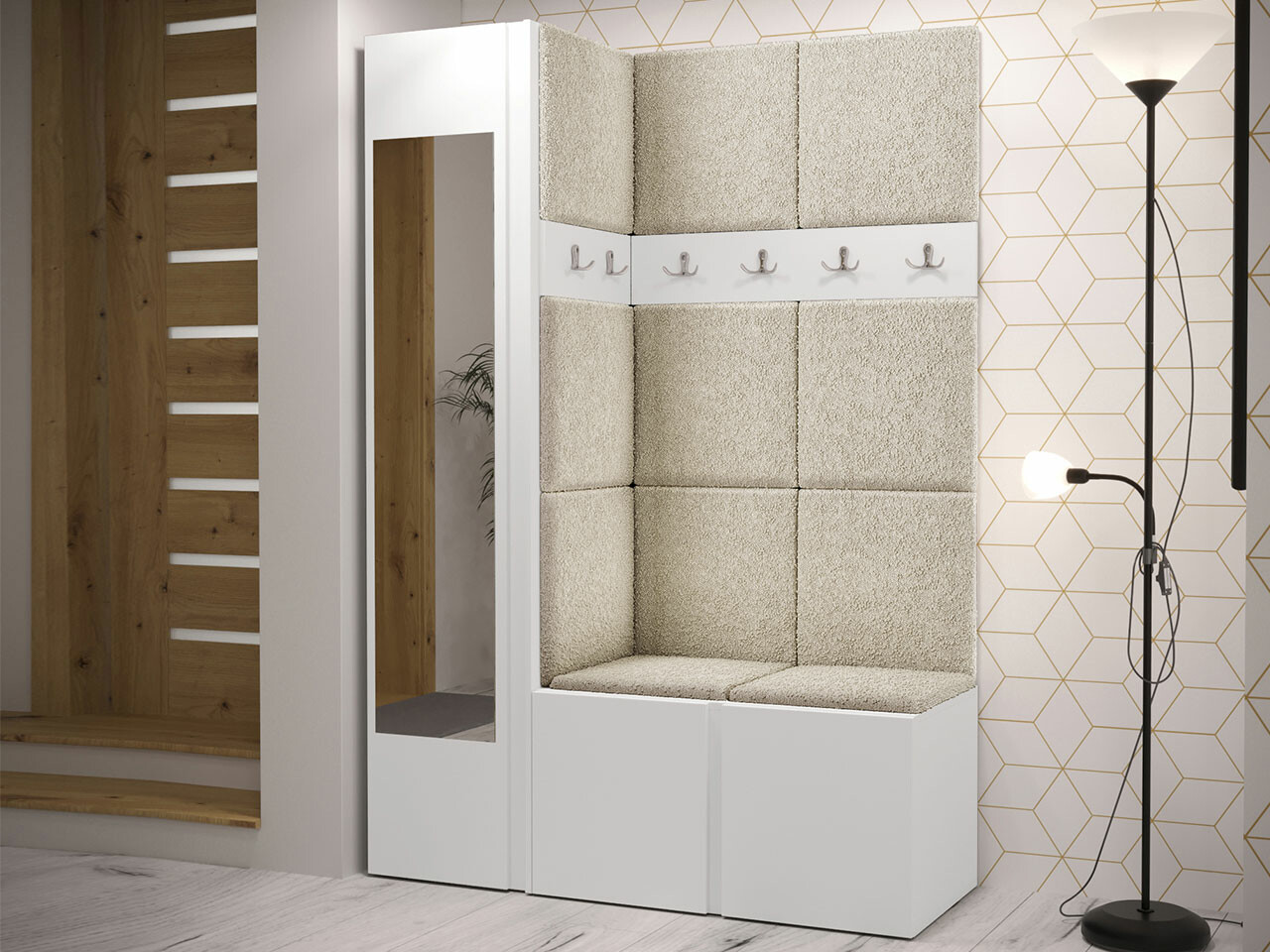 Een elegante en functionele keuze voor je huis. Dankzij het verhoogde oppervlak creëert het paneel een uniek 3D-effect. Deze zachte panelen zorgen voor meer gezelligheid en comfort, bovendien zien ze eruit als een decoratief element. Door hun unieke eigenschappen absorberen ze geluid. Gebruik de panelen als een aparte kamerfunctie of om de hele muur te bedekken.