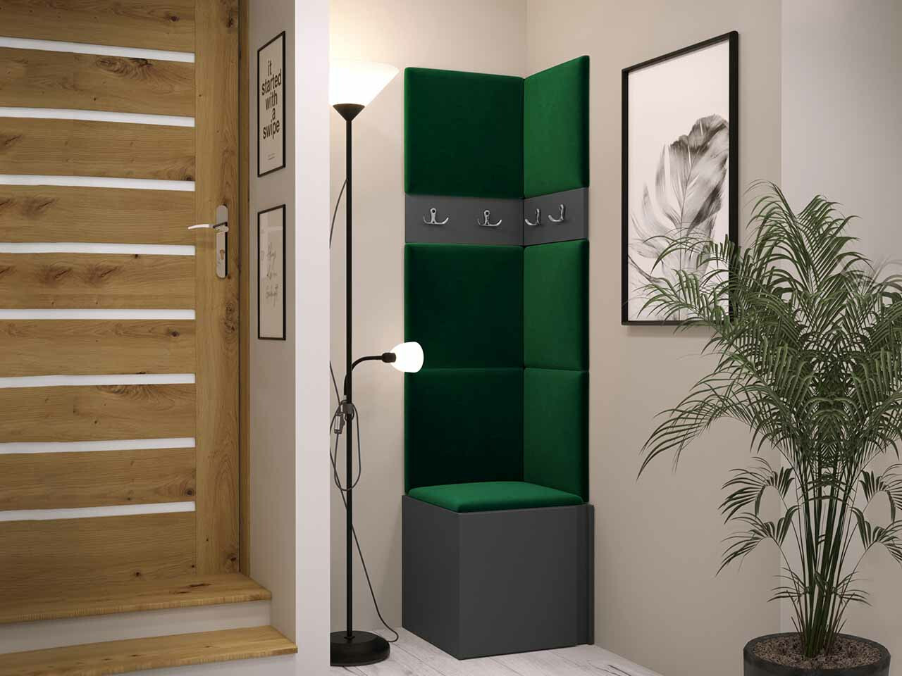 Het paneel is gemaakt van een 8 mm dikke plaat die de wandbevestiging verbetert. De zachtheid en vorm worden gegarandeerd door een 3 cm dikke synthetische stof en de stof waarmee deze is bekleed. U kunt de stof van het paneel kiezen uit een breed scala aan kleuren, zodat u zeker iets vindt dat bij uw interieur past.
