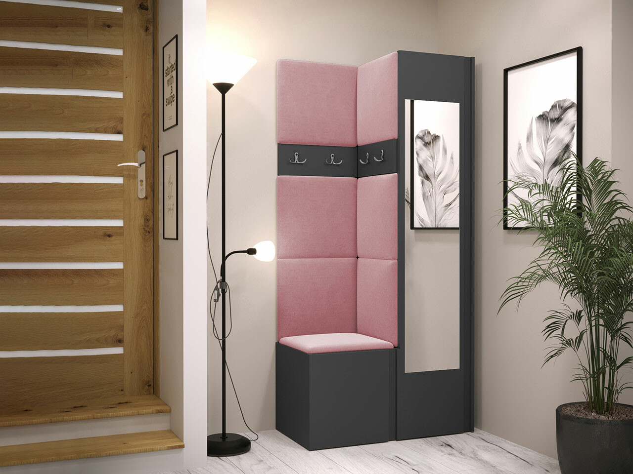 Het paneel is gemaakt van een 8 mm dikke plaat die de wandbevestiging verbetert. De zachtheid en vorm worden gegarandeerd door een 3 cm dikke synthetische stof en de stof waarmee deze is bekleed. U kunt de stof van het paneel kiezen uit een breed scala aan kleuren, zodat u zeker iets vindt dat bij uw interieur past.