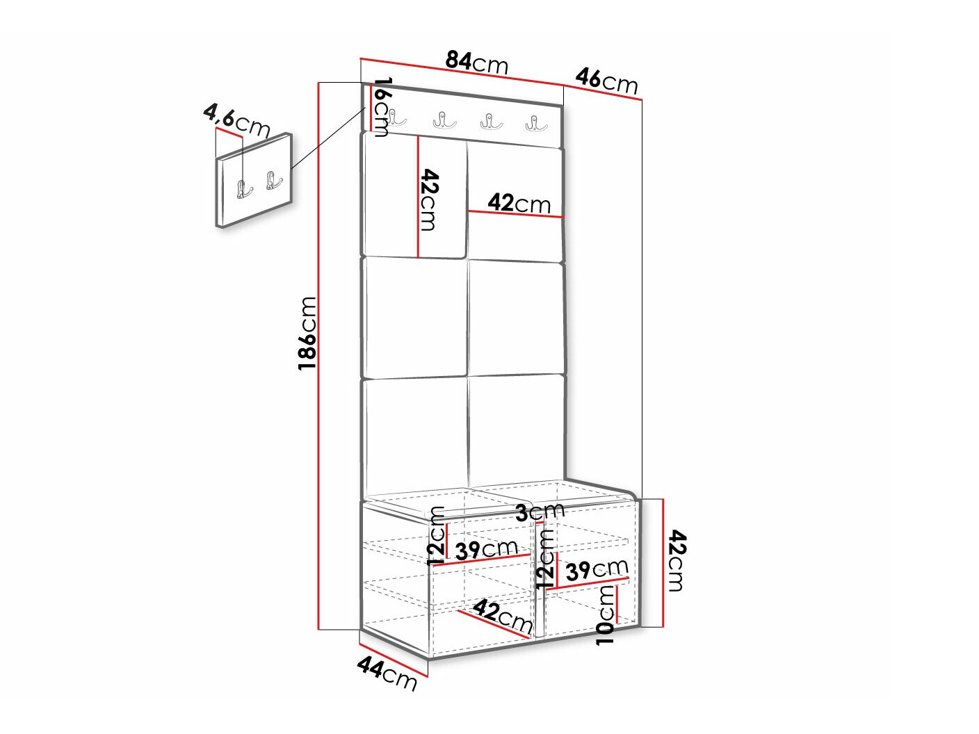 Schoenenkast afmetingen: