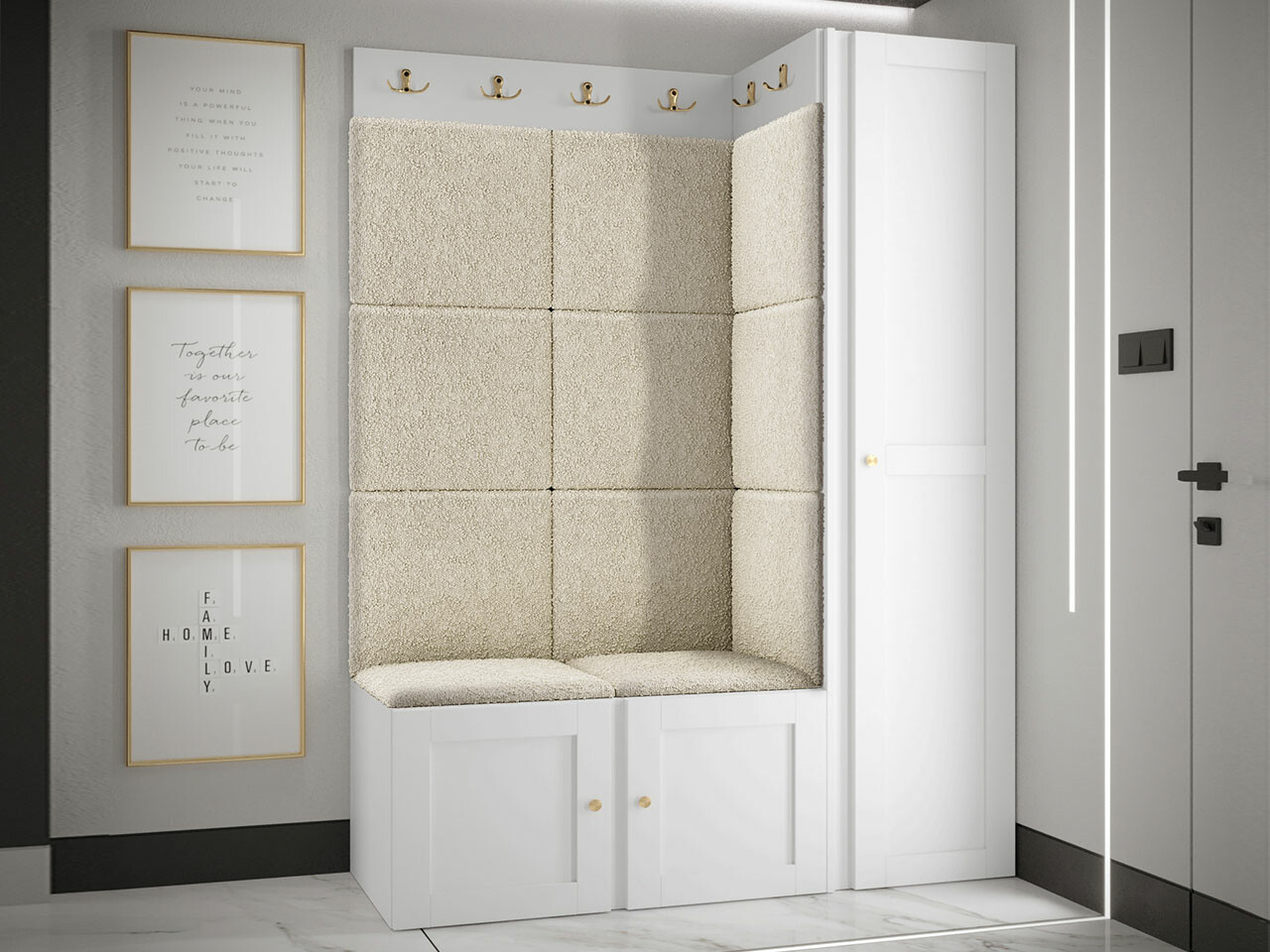 Een elegante en functionele keuze voor je huis. Dankzij het verhoogde oppervlak creëert het paneel een uniek 3D-effect. Deze zachte panelen zorgen voor meer gezelligheid en comfort, bovendien zien ze eruit als een decoratief element. Door hun unieke eigenschappen absorberen ze geluid. Gebruik de panelen als een aparte kamerfunctie of om de hele muur te bedekken.