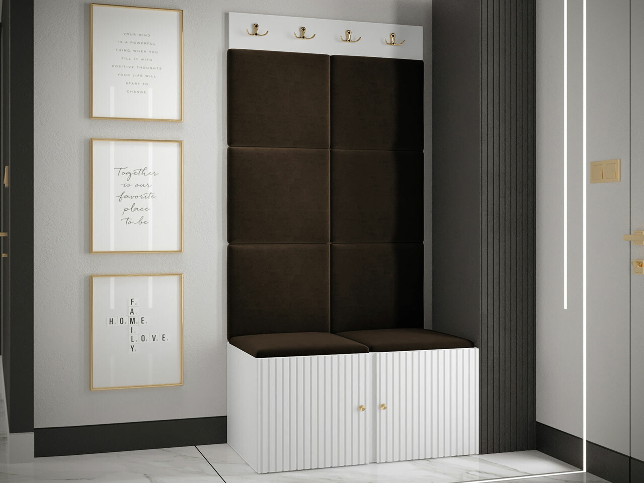 Een elegante en functionele keuze voor je huis. Dankzij het verhoogde oppervlak creëert het paneel een uniek 3D-effect. Deze zachte panelen zorgen voor meer gezelligheid en comfort, bovendien zien ze eruit als een decoratief element. Door hun unieke eigenschappen absorberen ze geluid. Gebruik de panelen als een aparte kamerfunctie of om de hele muur te bedekken.