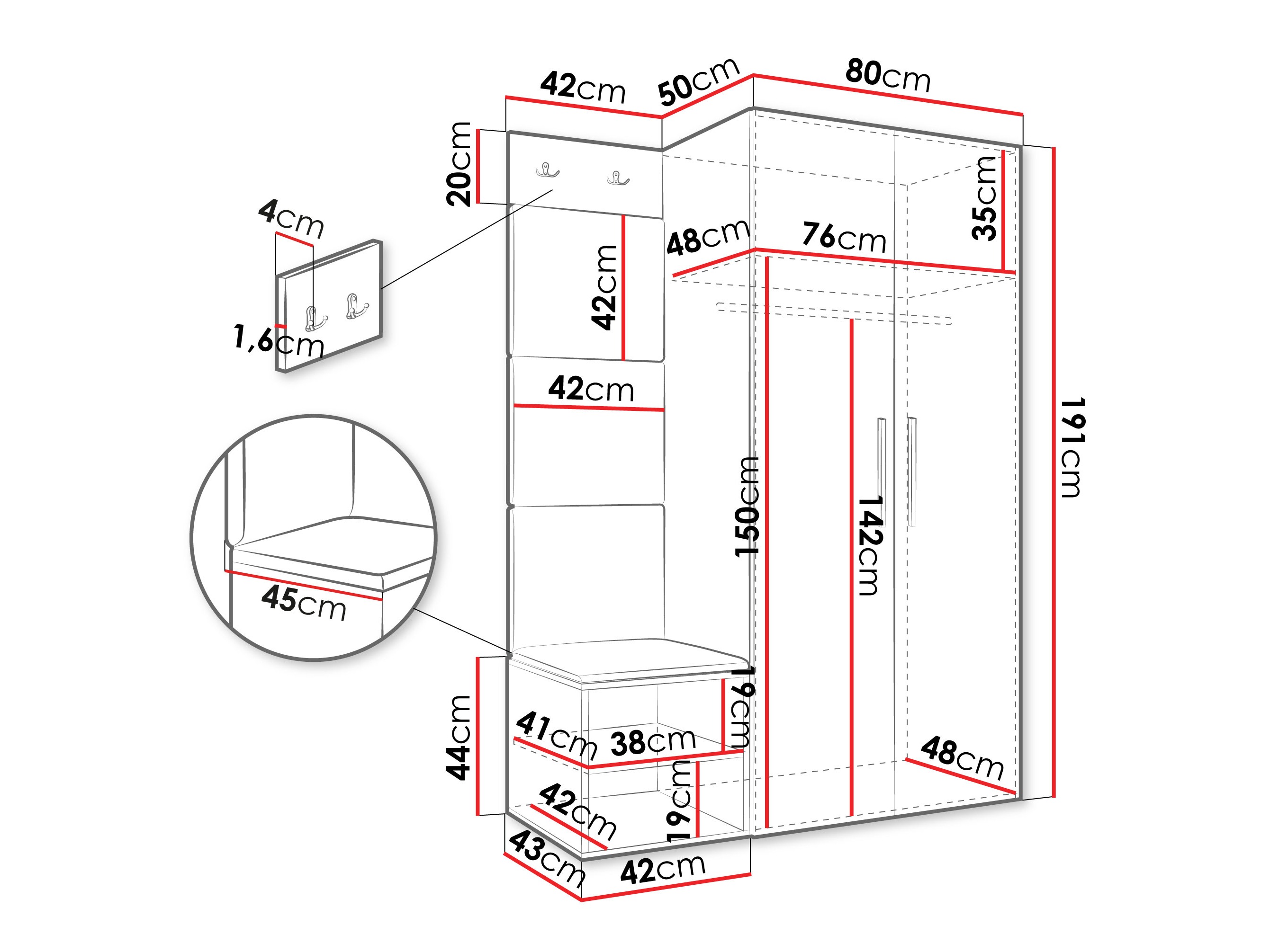 Afmetingen kledingkast: