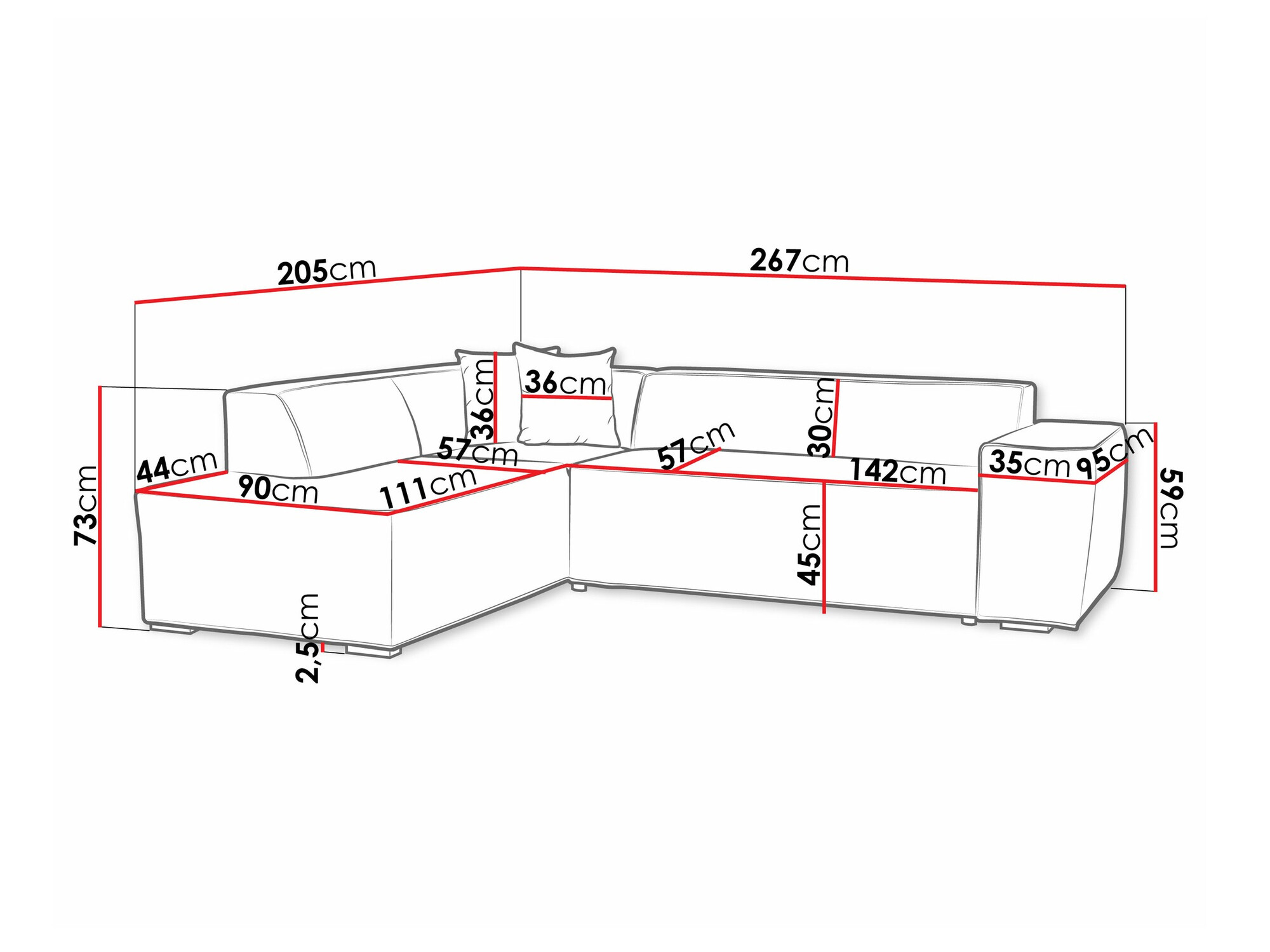 Kijk je frontaal naar de bank, dan bevindt het verlengde deel van de rechteroptie zich rechts van u. De gekozen hoekoptie moet de doorstroming van de ruimte verbeteren en ervoor zorgen dat je je gemakkelijk door de ruimte kunt bewegen.