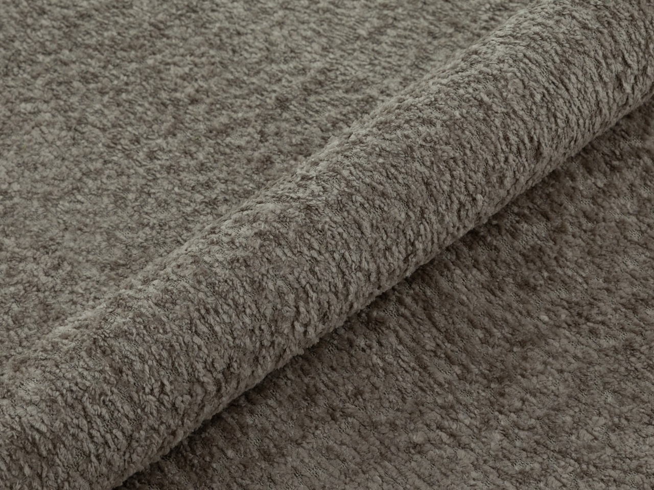 "Boucle" (Bouclé) stof valt op door zijn unieke getextureerde patroon, gecreëerd door lussen en knopen van verschillende groottes. Deze karakteristieke eigenschap geeft meubels een uitzonderlijk karakter en een gezellige uitstraling. Het oppervlak van de stof kan zacht of wolachtig aanvoelen. Dankzij de stevige structuur behoudt deze stof goed zijn vorm, waardoor het een uitstekende keuze is voor banken, fauteuils en andere meubelstukken. Als u een verfijnde en moderne ruimte wilt creëren, is deze stof de perfecte keuze.