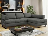 Kijk je frontaal naar de bank, dan bevindt het verlengde deel van de rechteroptie zich rechts van u. De gekozen hoekoptie moet de doorstroming van de ruimte verbeteren en ervoor zorgen dat je je gemakkelijk door de ruimte kunt bewegen.