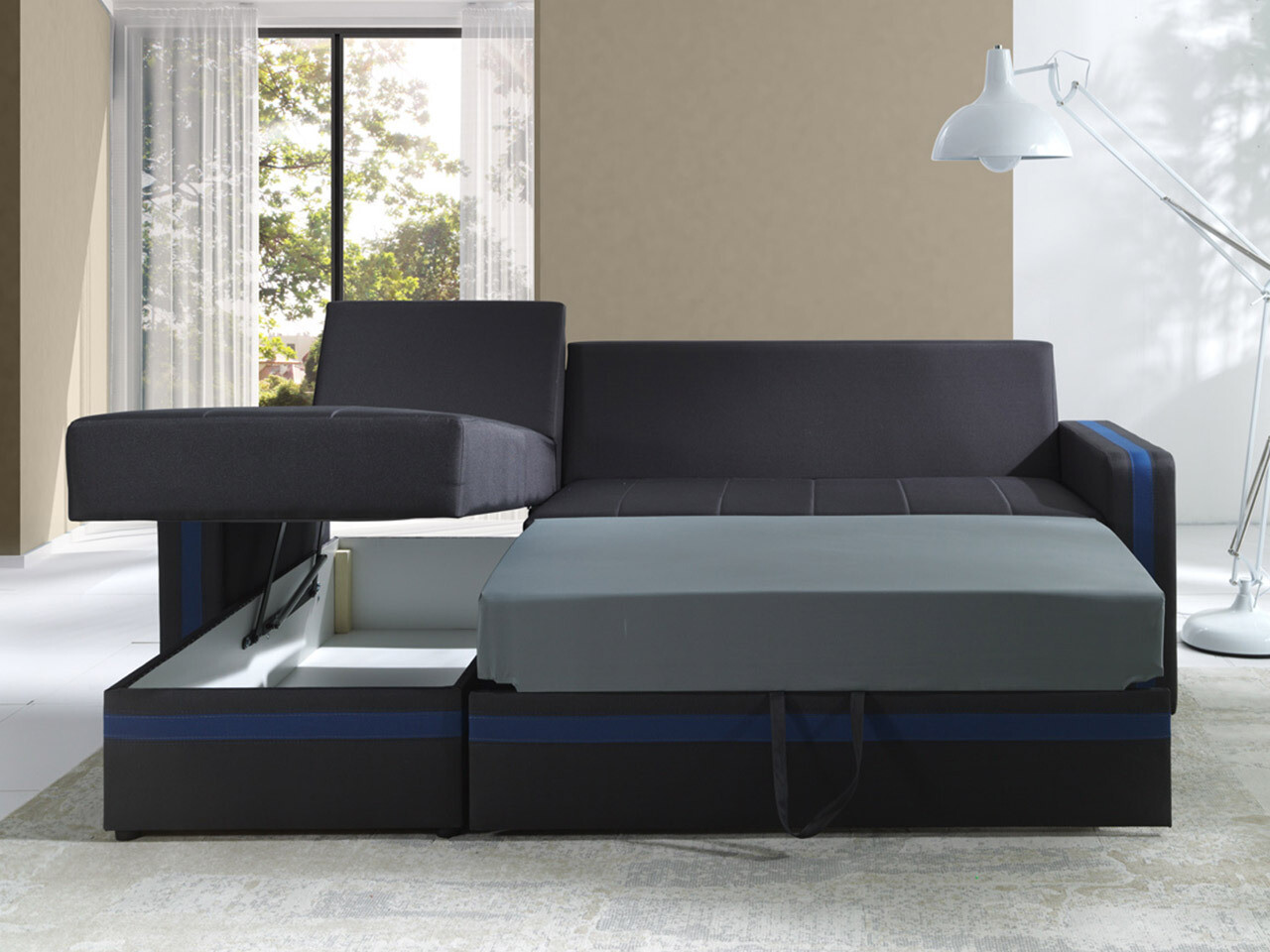 Het is een eenvoudige en handige oplossing waarmee je het meubel zonder veel moeite kunt transformeren. De lade onder de zitting is onzichtbaar en wanneer deze wordt uitgetrokken, kan het meubel een geweldige slaapplaats worden. Om het meubel uit te klappen, trek je gewoon het onderste deel naar je toe en trek je de lade met het extra slaapgedeelte eruit. Gebruik de lus om de matras erin te tillen. Dit slaapgedeelte is iets stijver dan normaal. Dankzij het niet bewegende ruggedeelte kunnen meubels met dit mechanisme vlak tegen de muur worden geplaatst.
