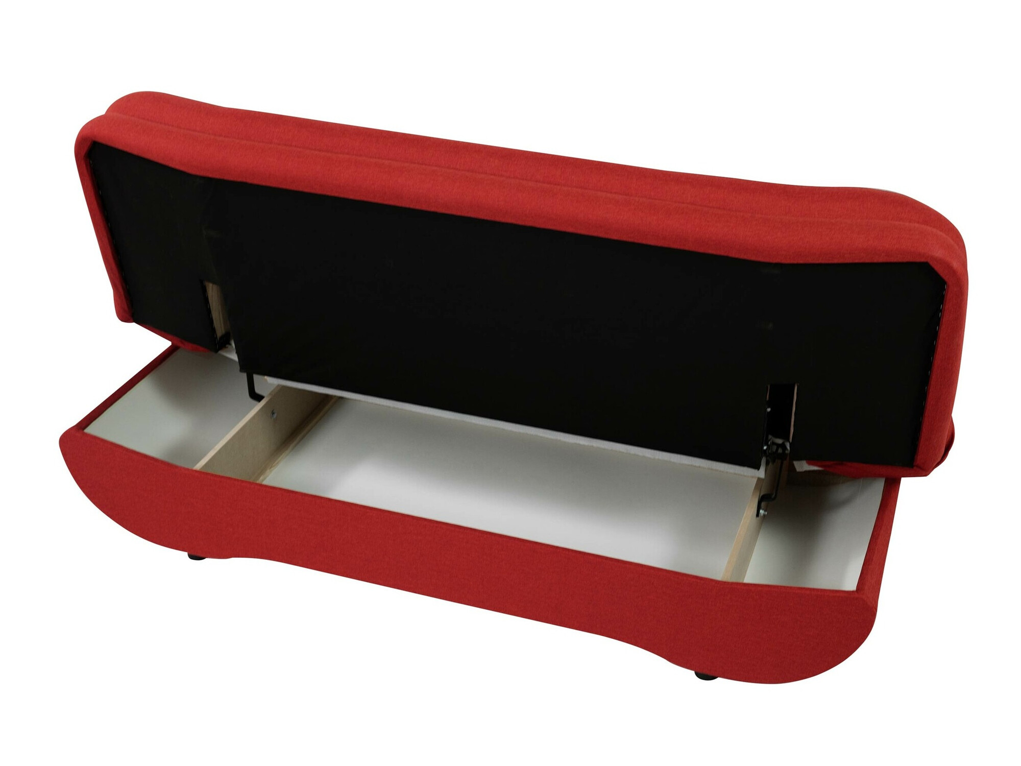 Dit simpele slaapmechanisme is uiterst eenvoudig te gebruiken. Er zijn slechts twee bewegingen nodig en het meubel is klaar om op te slapen. Til de zitting op tot je de vergrendeling voelt en laat hem dan zakken om het meubel volledig uit te klappen. En om het meubel weer in zijn oorspronkelijke positie te brengen, herhaal je simpelweg de stappen. Voor de transformatie adviseren wij om een opening te laten tussen de muur en het meubel, zodat je de muur niet beschadigt bij het optillen van het zitgedeelte van de bank. Bovendien heeft dit mechanisme een geïntegreerde extra ruimte voor beddengoed.