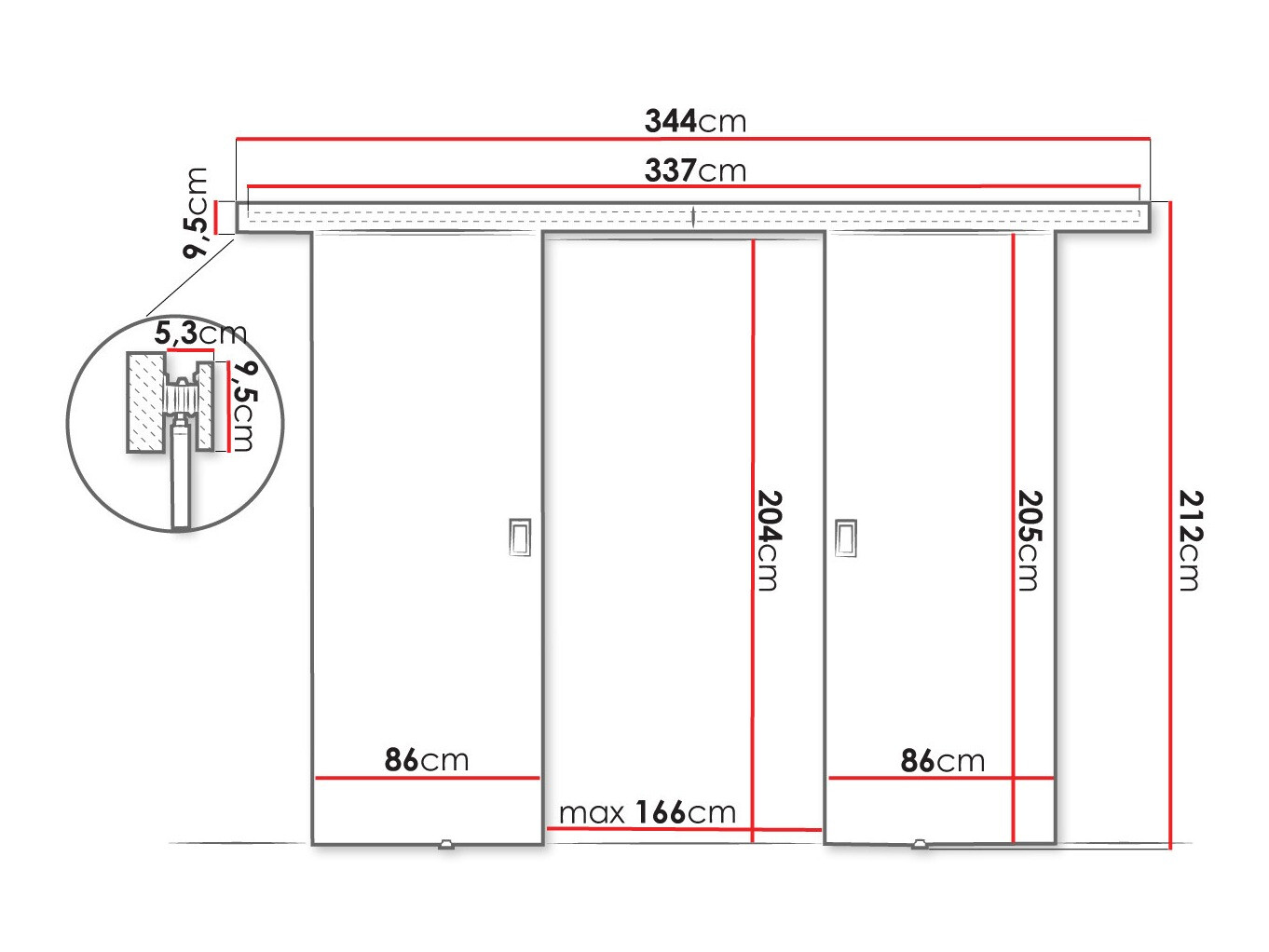 Afmetingen schuifdeursysteem: