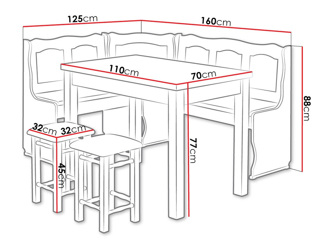 Afmetingen bank:
