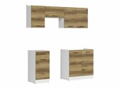 Keukenmeubels kunnen vaak als set worden gekocht, of door het combineren van losse kasten. Bij beide opties bevindt zich achter elk keukenkastje een ruimte voor leidingen langs de muur. Kasten voor inbouwapparatuur en hoekunits hebben een grotere diepte, omdat ze geen openingen voor leidingen hebben. Deze ruimte wordt van bovenaf bedekt door het werkblad. Als de kasten zonder werkblad verkocht worden, moet dit apart worden aangeschaft en gemonteerd. Het aanrechtblad wordt met schroeven vastgezet en wordt geleverd zonder voorgesneden delen voor spoelbakken of kookplaten. Bij aanschaf van een hoekkast is het belangrijk om een werkbladverbinder te kopen om eventuele openingen in de hoek te voorkomen.