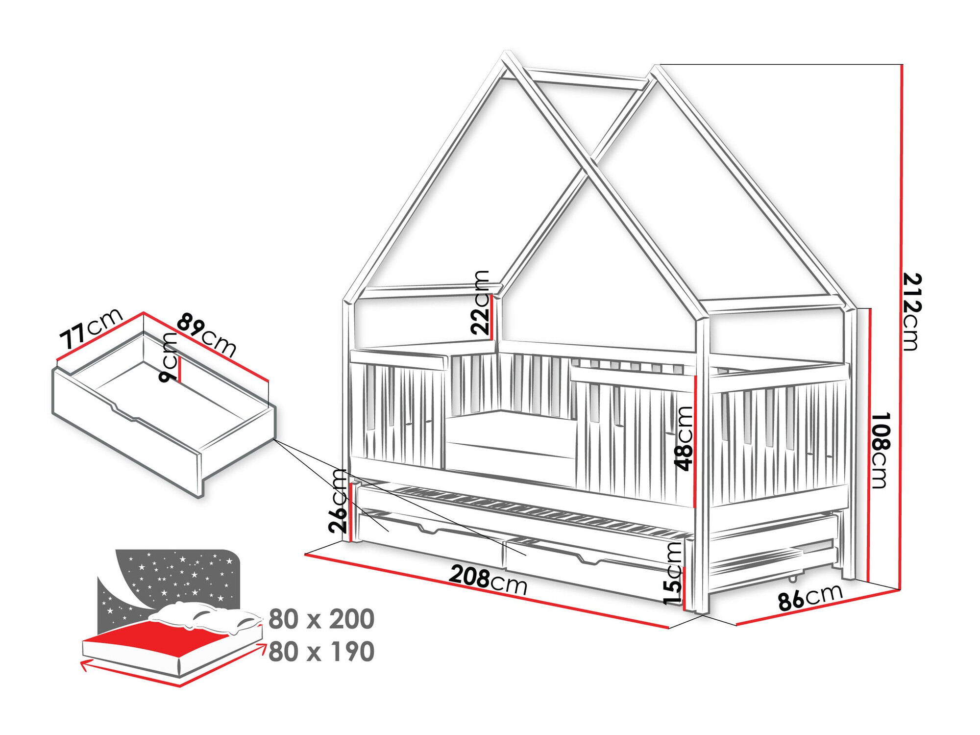 • 80 x 200 cm