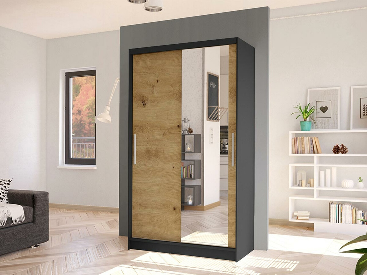 Kledingkast Closico 164 (Zwart + Artisan eiken)