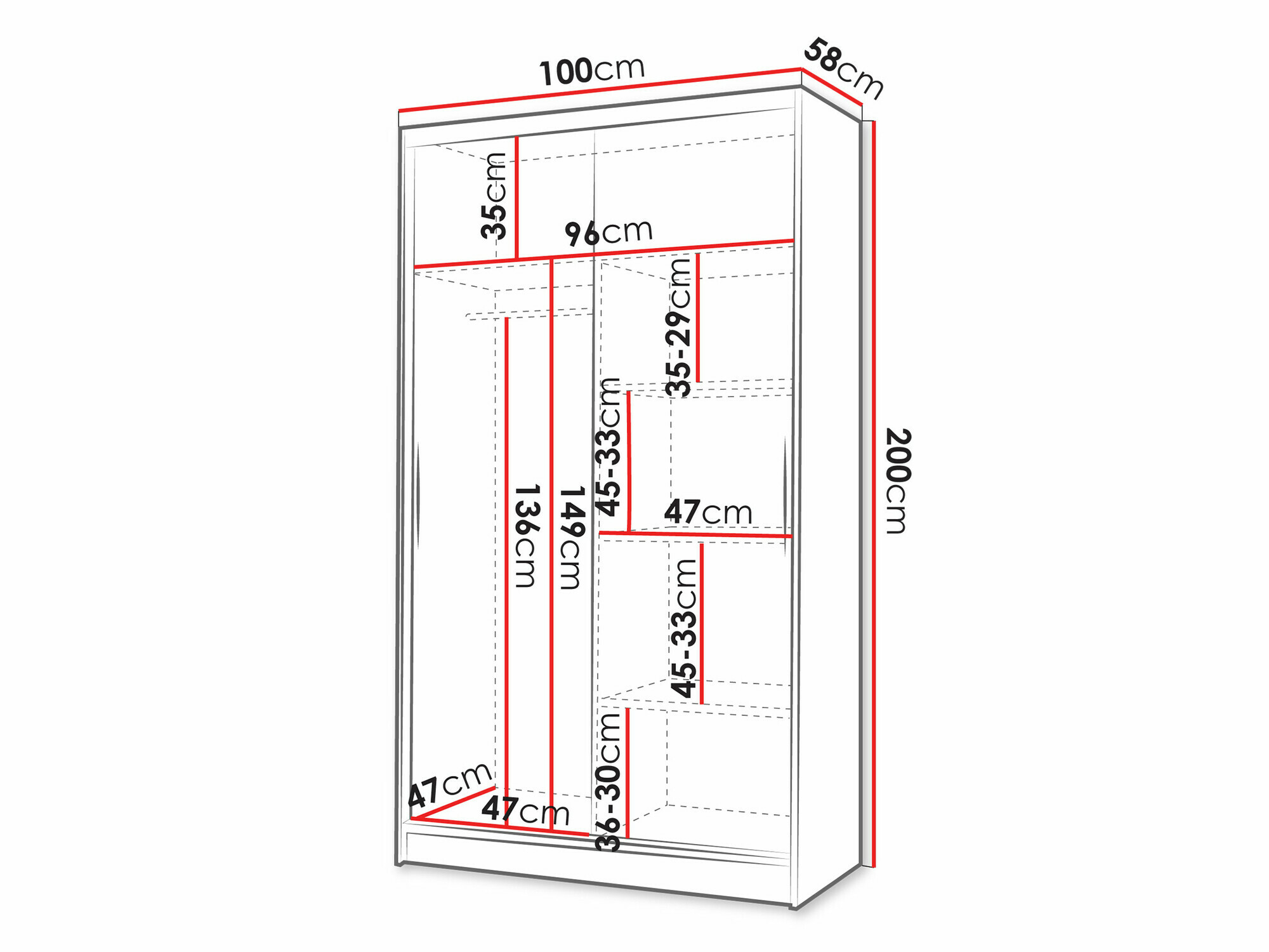 200 cm  100 cm  58 cm