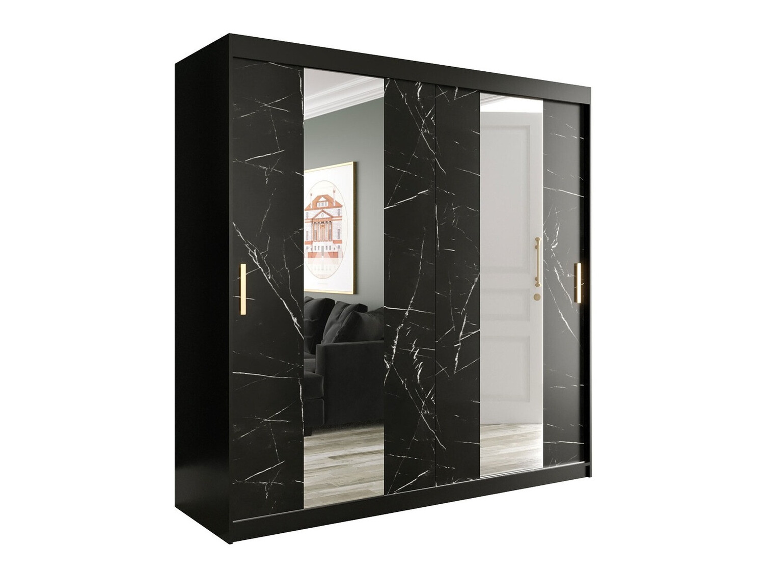 Kledingkast Hartford 244 (Matzwart + Zwart marmer)