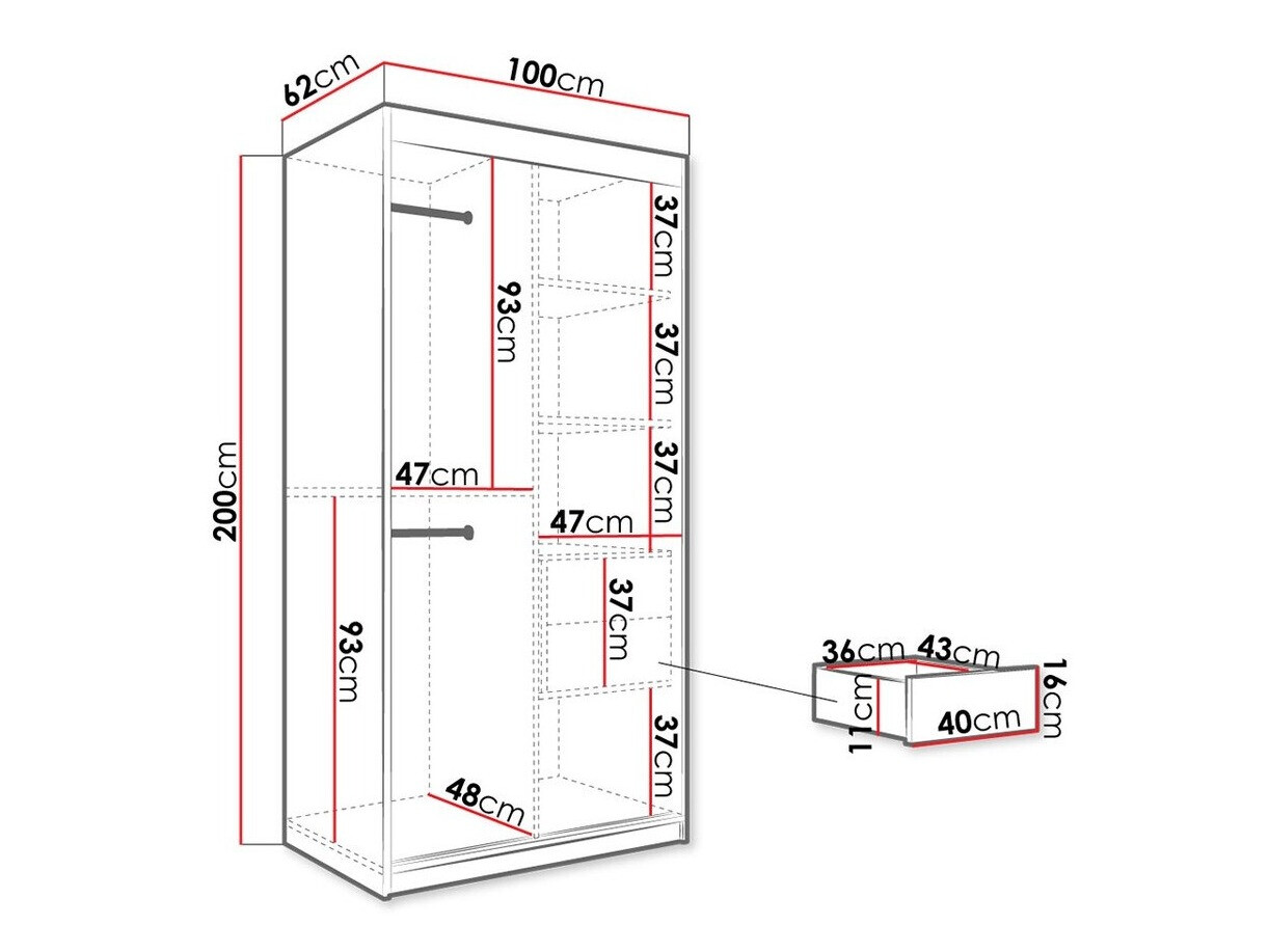 Kledingkast Hartford 252 (Matzwart + Zwart marmer)
