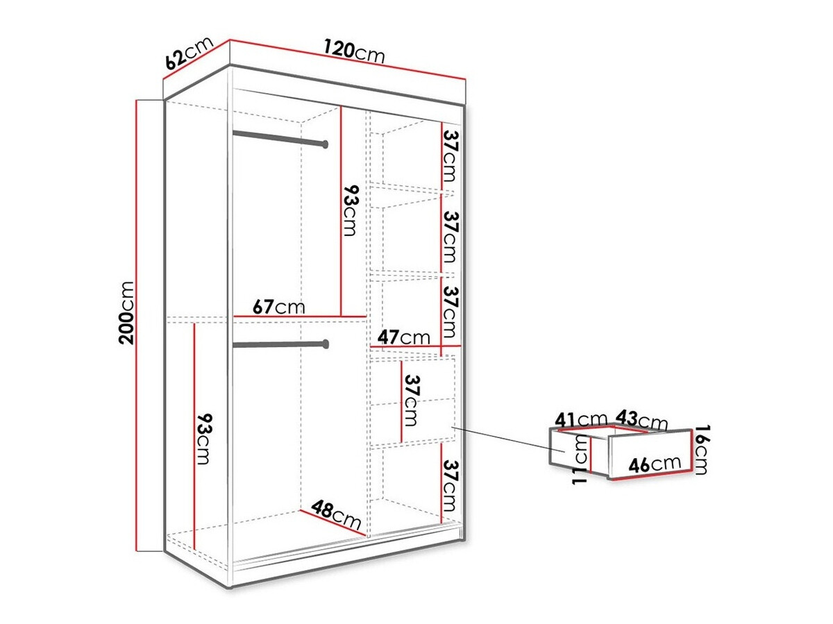 Kledingkast Hartford 253 (Matzwart + Wit marmer)