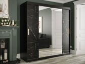 Kledingkast Hartford 256 (Matzwart + Zwart marmer)