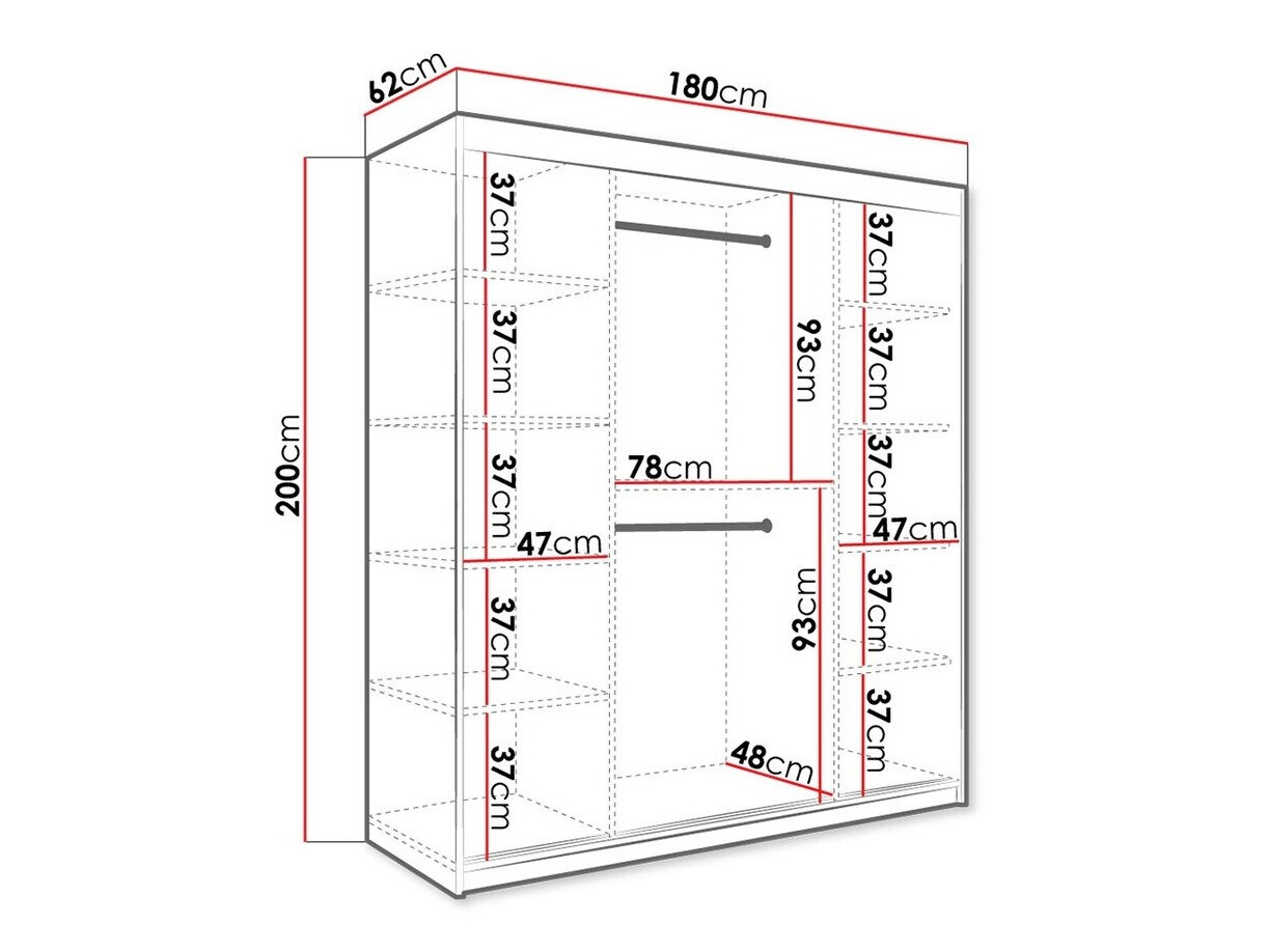 Kledingkast Hartford 261 (Matzwart + Zwart marmer)