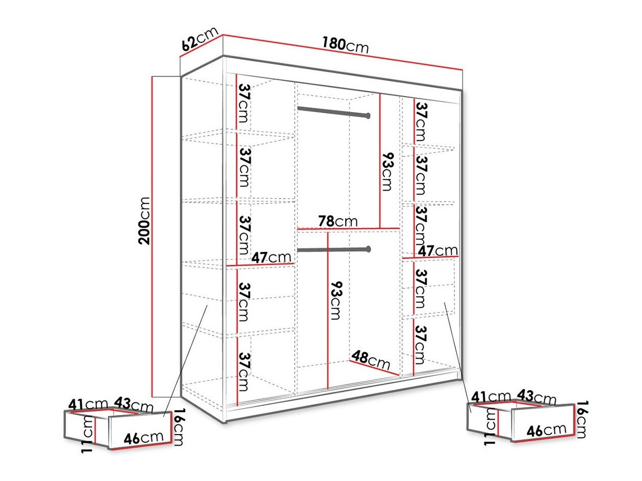 Kledingkast Hartford 261 (Matzwart + Zwart marmer)