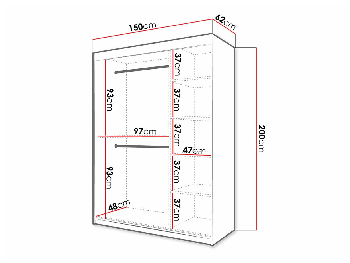 200 cm  150 cm  62 cm