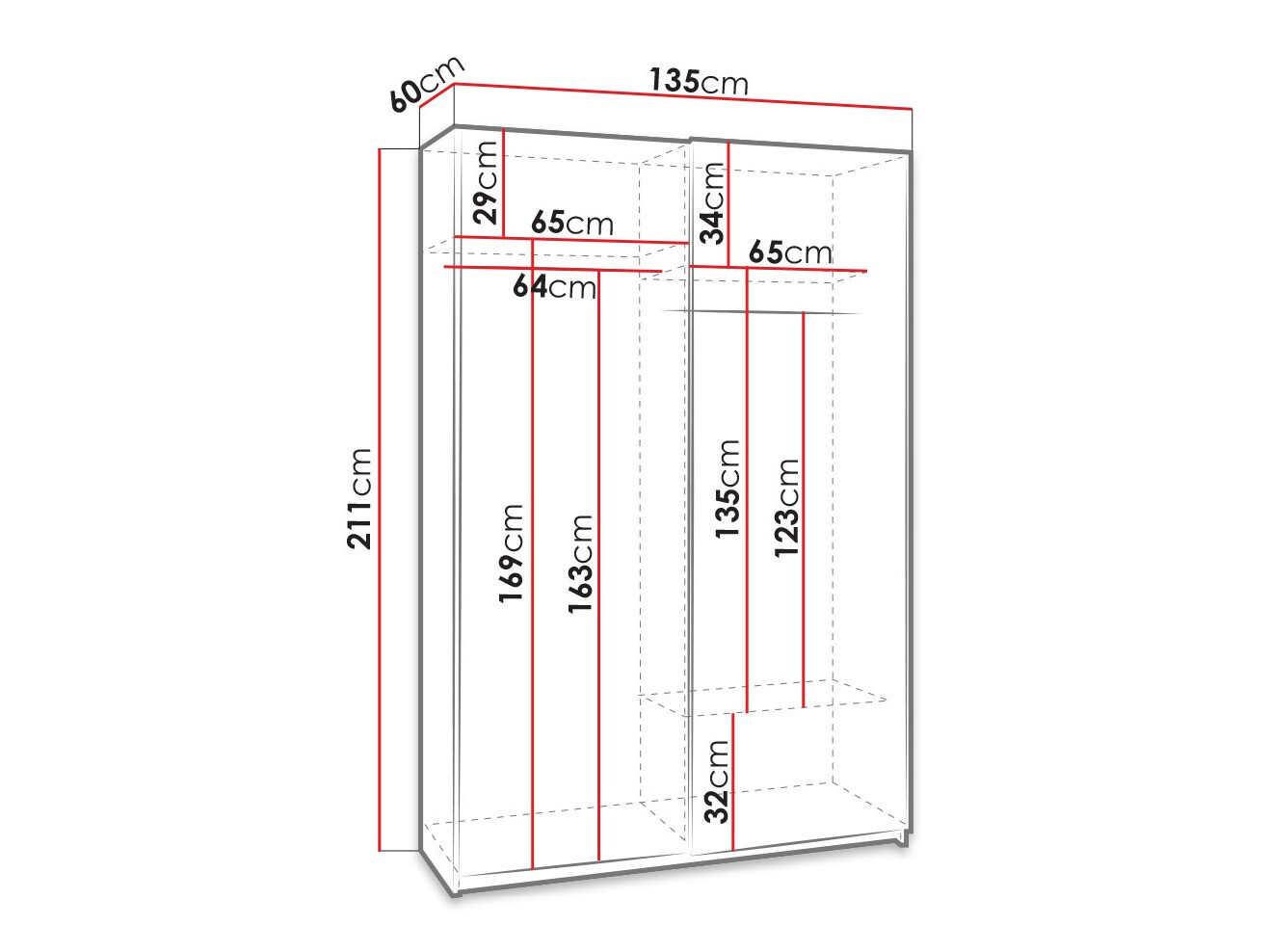 211 cm  135 cm  60 cm