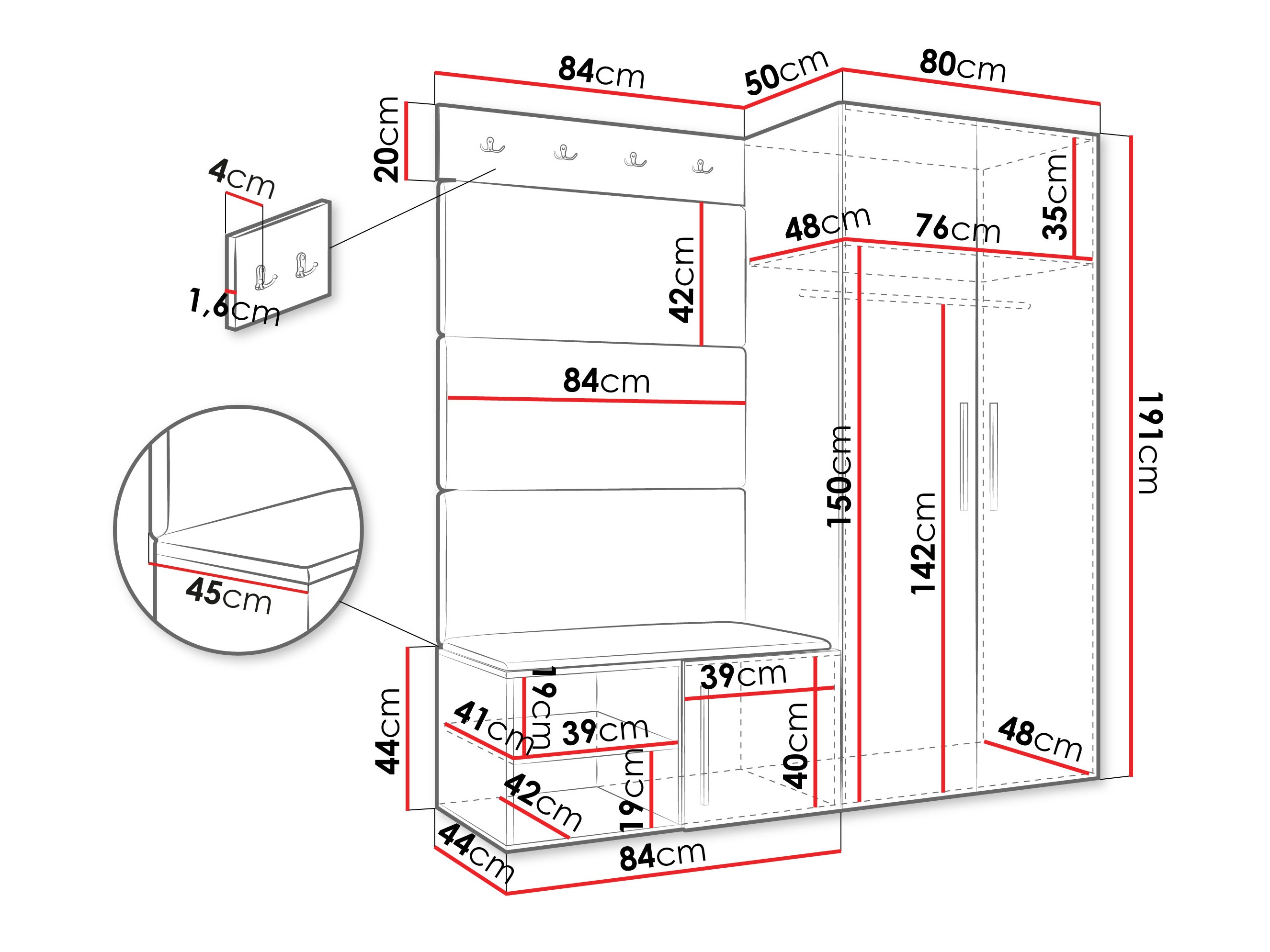 Afmetingen kledingkast: