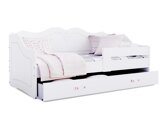 Een mooi bed van MDF (de kast eronder is van MDF). Over het algemeen is het goed. De montage kost meer tijd, maar is niet ingewikkeld. De tussenschotten zijn niet afgerond, met lichte druk ontstaat er een opening op dezelfde planken en de kast eronder gaat niet open, de kast heeft geen aanslag en gaat naar binnen.