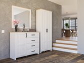 Als je houdt van de eenvoud van de Scandinavische stijl en interieurideeën, dan is deze collectie wat je zoekt. De meubelcollectie verspreidt eenvoud en gezelligheid. De collectie wordt gedomineerd door heldere en lichte kleuren. De lichte gevels en kasten van de meubels hebben enkele hints van houtpatroon, wat het natuurlijkheid geeft en goed samengaat met de werkbladen. Deze collectie maakt indruk door de eenvoud van de gevels en de kleine handgrepen die als accent dienen. Met de meubels uit de collectie kun je een stijlvol ogende woonkamer of hal inrichten. Niet alleen gezellig, maar ook praktisch design biedt plaats aan de belangrijkste zaken en zorgt ervoor dat het gebruik van de meubels zo aangenaam mogelijk is. Bijzonder aan het meubel is het geruislozesluitmechanisme, dat de deuren en laden beschermt tegen snel dichtvallen. Dankzij speciale dempers worden de deuren en laden vlak voor het sluiten gestopt en langzaam ingetrokken, zodat ze geen lawaai maken. De meubelen komen zowel in lichte als donkere interieurs goed tot hun recht en creëren een Scandinavische sfeer.