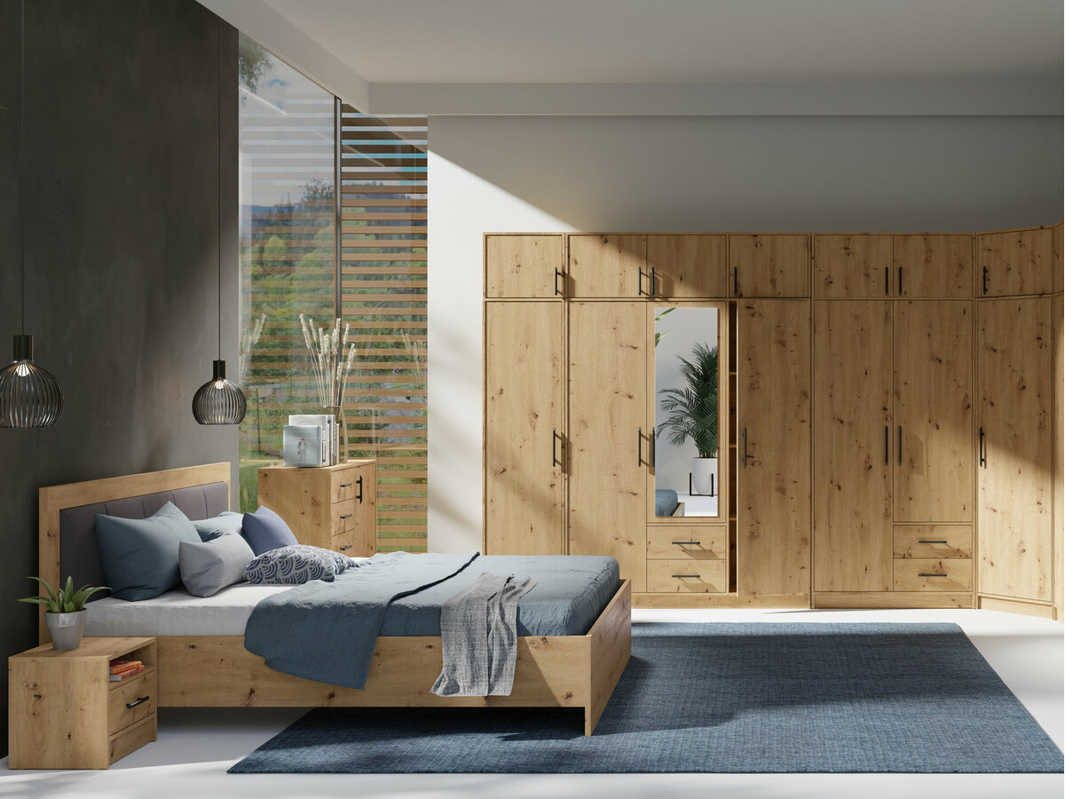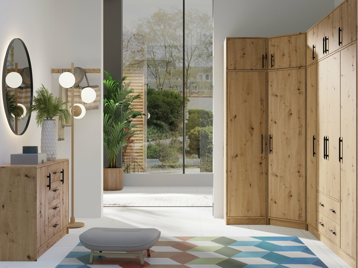 Als je op zoek bent naar functionele meubels, dan is deze collectie iets voor jou! Het neutrale kleurenpalet is ideaal voor zowel de slaapkamer als de woonkamer, kinderkamer of hal. Door de mogelijkheid om verschillende meubels uit deze collectie te combineren, kun je gemakkelijk en snel een set meubels samenstellen die aan je verwachtingen voldoet. Het meubel is gemaakt van 16 mm dik gelamineerd karton, waarvan de randen zijn bedekt met een speciale tape, die dezelfde kleur heeft als het meubel. Deze tape is gemaakt van sterk plastic en dient als extra bescherming van de panelen. De metaalkleurige kunststof handgrepen zijn gemakkelijk te gebruiken en vullen het beeld van deze functionele collectie aan.