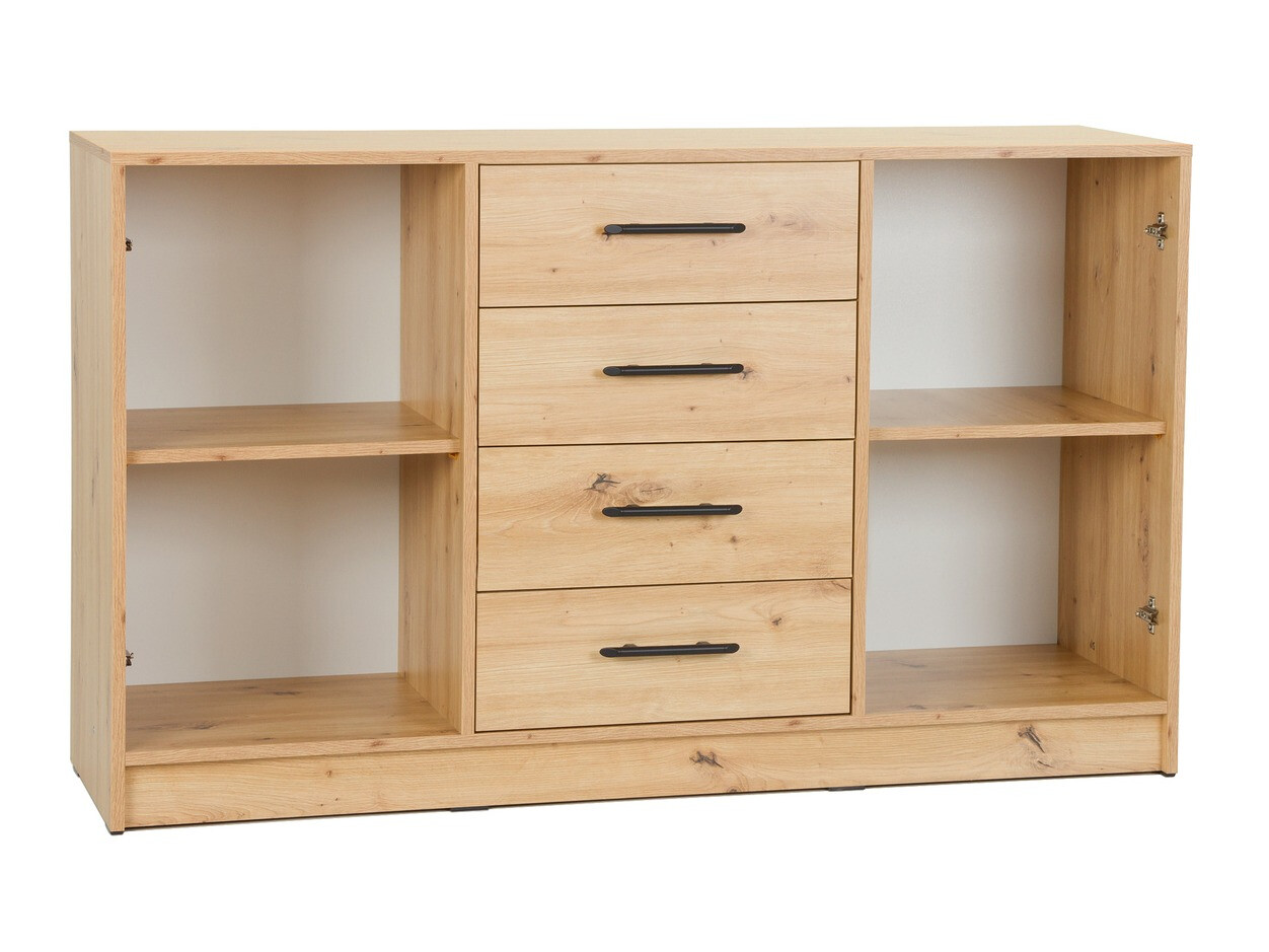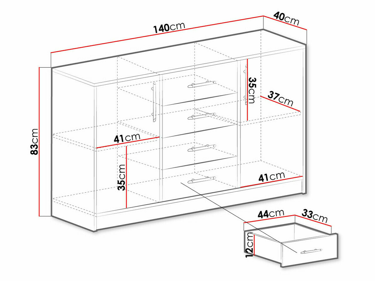 Als je op zoek bent naar functionele meubels, dan is deze collectie iets voor jou! Het neutrale kleurenpalet is ideaal voor zowel de slaapkamer als de woonkamer, kinderkamer of hal. Door de mogelijkheid om verschillende meubels uit deze collectie te combineren, kun je gemakkelijk en snel een set meubels samenstellen die aan je verwachtingen voldoet. Het meubel is gemaakt van 16 mm dik gelamineerd karton, waarvan de randen zijn bedekt met een speciale tape, die dezelfde kleur heeft als het meubel. Deze tape is gemaakt van sterk plastic en dient als extra bescherming van de panelen. De metaalkleurige kunststof handgrepen zijn gemakkelijk te gebruiken en vullen het beeld van deze functionele collectie aan.