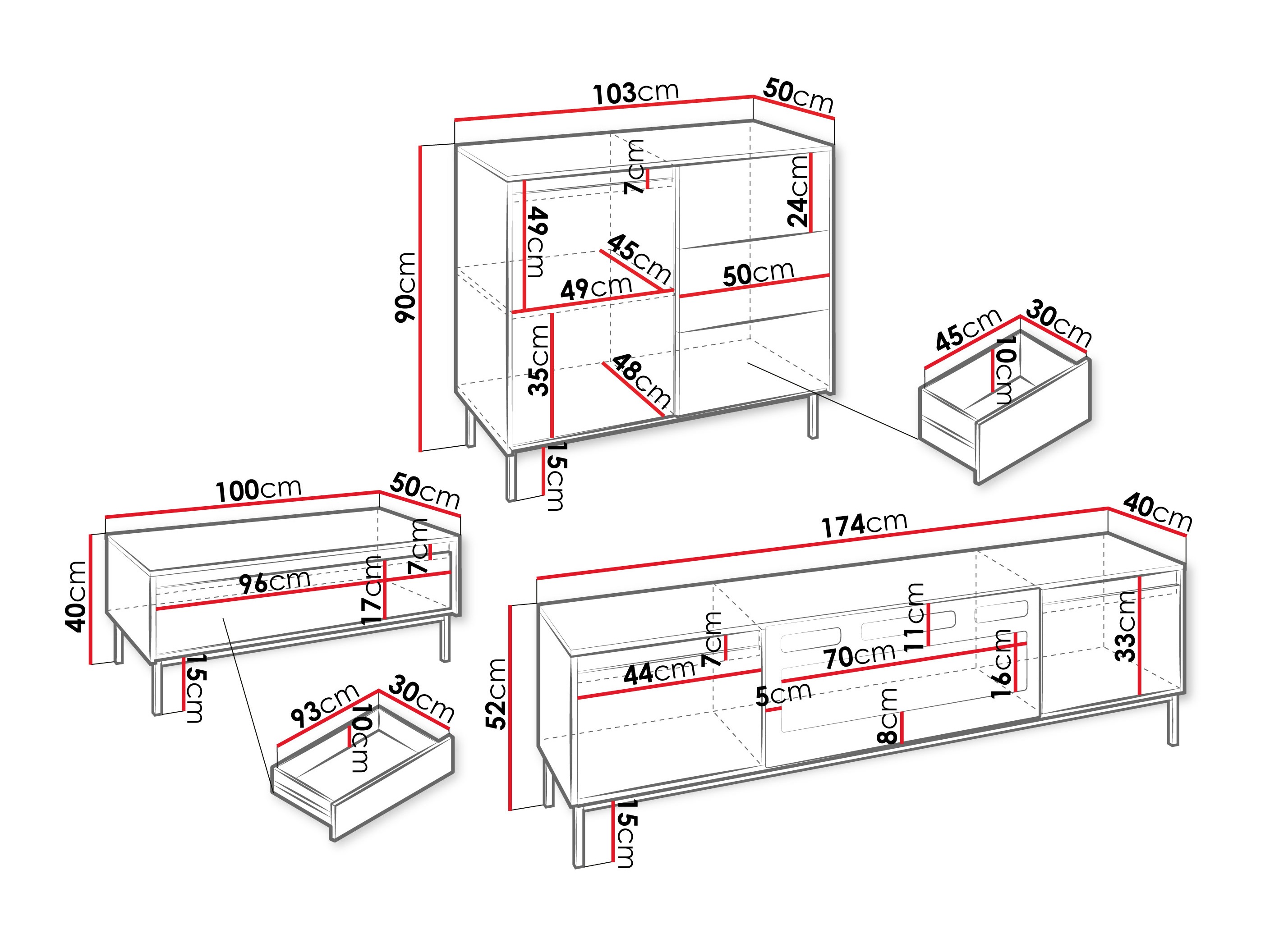 Afmetingen ladekast: