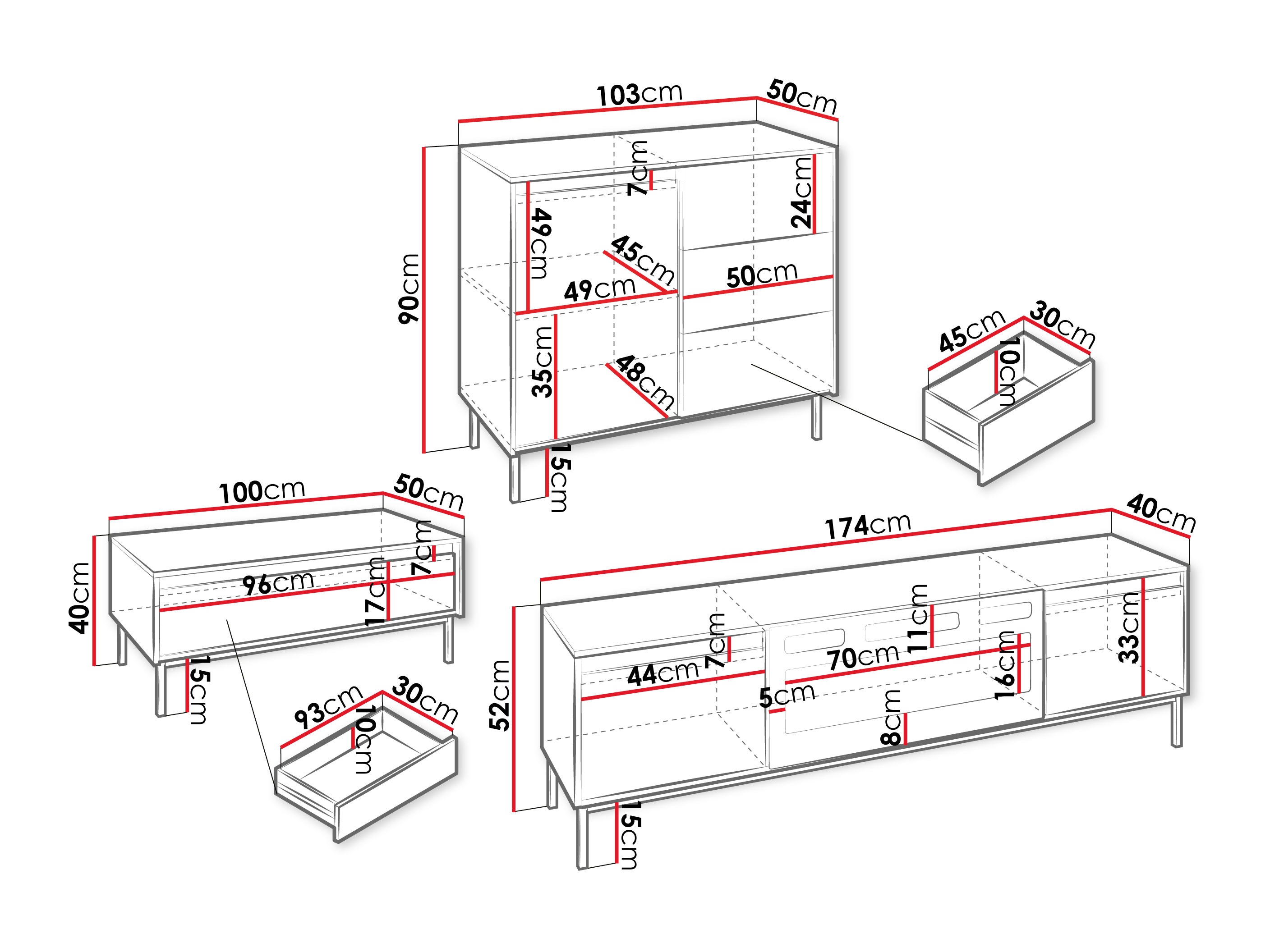 Afmetingen ladekast: