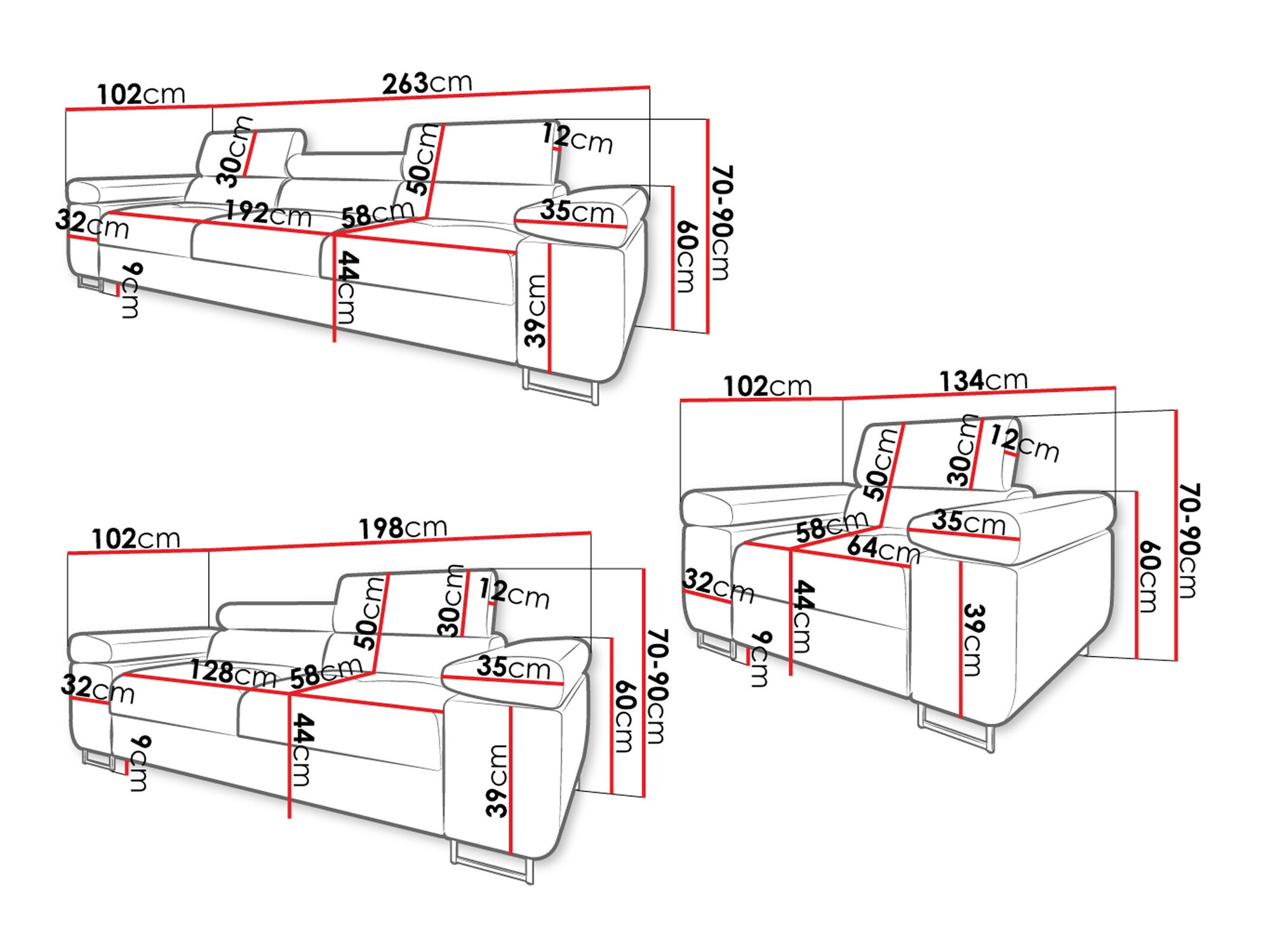 70 cm  198 cm  102 cm