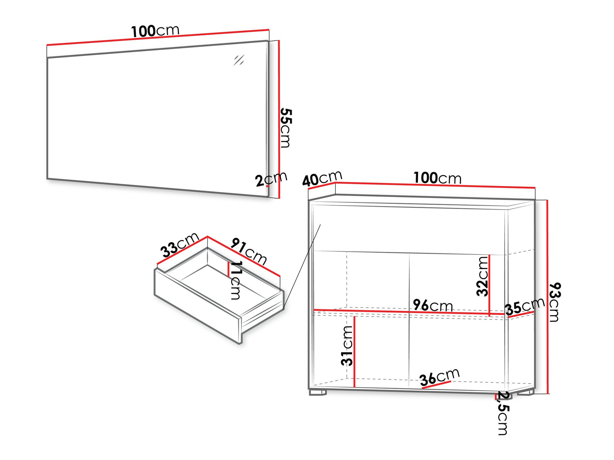 55 cm  100 cm  2 cm