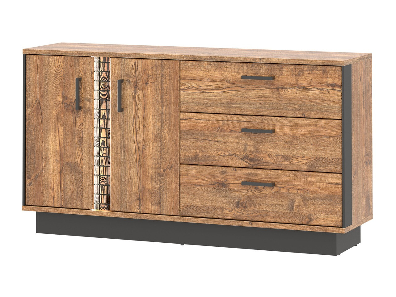 De meubels van deze collectie horen thuis in vele interieurstijlen, maar zullen het meest geschikt zijn in woningen in moderne of industriële stijl. Het unieke ontwerp van de meubelen wordt onthuld door de combinatie van zwarte metalen poten en lichte eikenhouten vlakken. Een exclusief patroon van geometrische vormen geeft de kamer authenticiteit en moderne kenmerken. Degenen die functionaliteit belangrijk vinden, zullen zeker tevreden zijn met de meubels van deze collectie. Het meubilair in huis zal niet alleen mooi zijn maar ook zijn functie vervullen omdat het ruime schappen en laden heeft. De meubels hebben geen handgrepen. Het "Push to open" mechanisme wordt gebruikt voor het soepel openen van deuren en laden. De randen van de meubels zijn beschermd met speciale ABS-tape, die de randen helpt beschermen tegen slijtage, zodat u nog langer van de meubels kunt genieten. Deze collectie is een weerspiegeling van moderne stijl en functionaliteit, dus het zal passen bij degenen die dromen van een modern interieur.