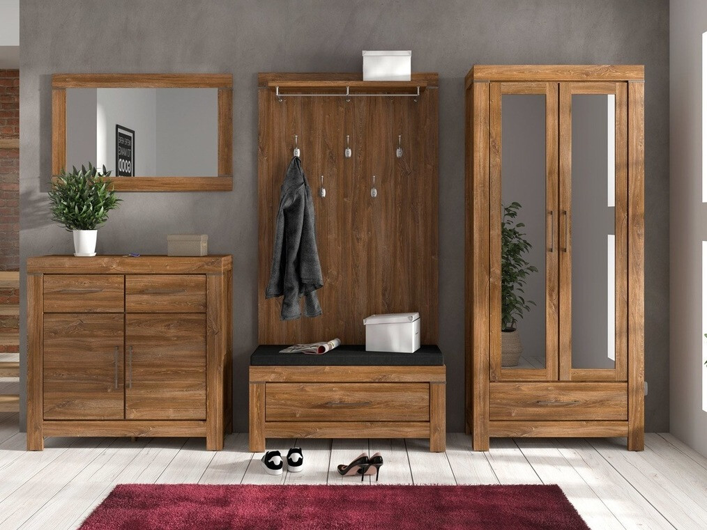 De eenvoud, exclusieve vormen en de weelderige kleur van de gevels van de meubelcollectie passen perfect in een breed scala van interieurs en spreken zowel liefhebbers van klassieke als exclusieve ontwerpen aan. De gevels van dit meubilair hebben een duidelijk zichtbaar houtpatroon, dat samen met de kleur van "Stirling" eikenhout gezelligheid en warmte geeft, en het geheel wordt esthetisch aangevuld met comfortabele metalen handgrepen. Door het brede assortiment kunnen deze modulaire meubels met succes worden gebruikt in de meest uiteenlopende kamers in huis en met elkaar worden gecombineerd, waardoor combinaties ontstaan die aan individuele behoeften voldoen. De interieurs van de kasten en laden zijn ruim genoeg om verschillende voorwerpen efficiënt op te bergen, terwijl de LED-verlichting in de vitrine, hangplanken, tv-tafels en legplanken een vleugje romantiek geeft. De vitrines in deze collectie zijn beglaasd met gehard glas, dat een veel hogere weerstand heeft dan gewoon glas. De collectie meubels heeft een stil sluitmechanisme dat zal zorgen voor meer comfort en zal je toelaten om extra lawaai te vermijden bij het gebruik van meubellades of kasten.