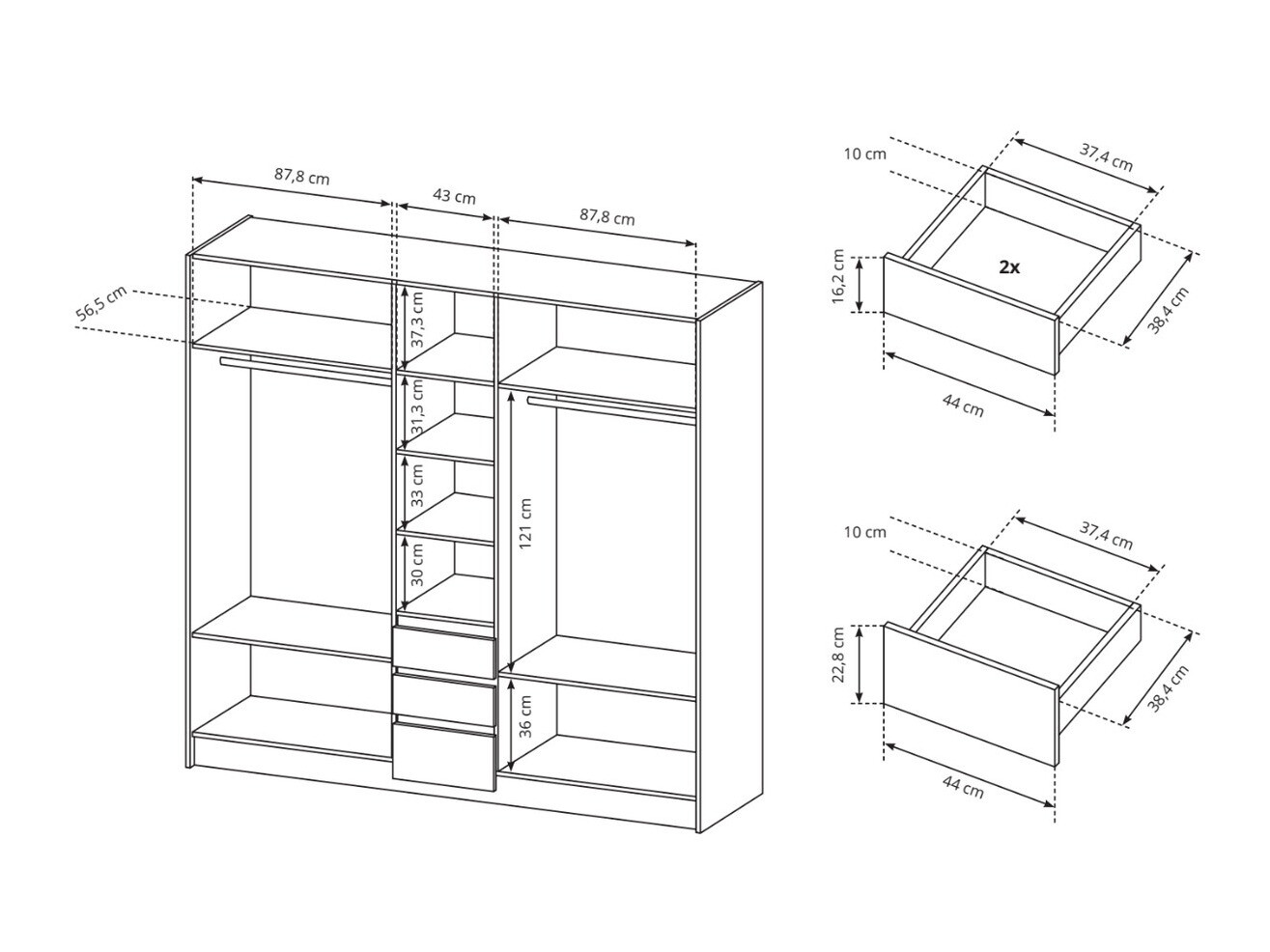 De kleerkast is mooi, ruim, wel graag op de website aangeven hoe de deuren van de kleerkast open gaan, want bij het in elkaar zetten was tot op het laatste moment niet duidelijk hoe hij open ging. B