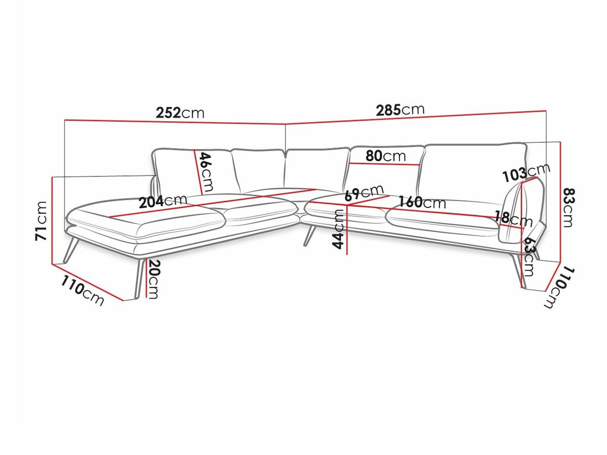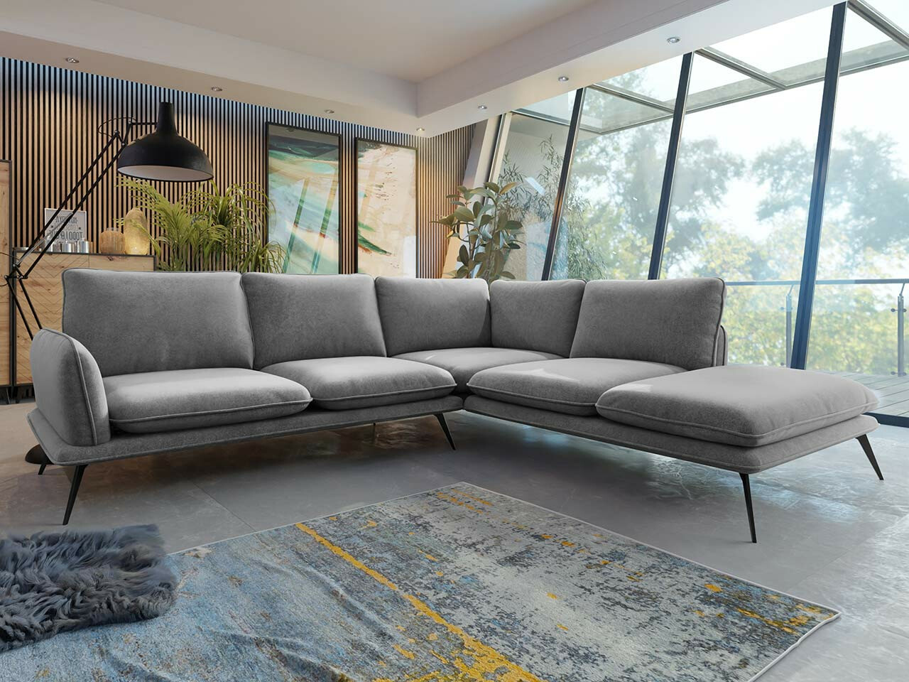 Kijk je frontaal naar de bank, dan bevindt het verlengde deel van de rechteroptie zich rechts van u. De gekozen hoekoptie moet de doorstroming van de ruimte verbeteren en ervoor zorgen dat je je gemakkelijk door de ruimte kunt bewegen.