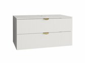 Een perfect oké product om naar te kijken. Ziet er leuk uit. Als u de lades dagelijks moet gebruiken, is het railsysteem waarschijnlijk de goedkoopst mogelijke installatie. Ook al ziet het er normaal uit, het werkt als de oude houten lades met rails. Zelfs IKEA heeft een aanzienlijk mooier en moderner systeem. Het werkblad is bovendien van zeer goedkoop materiaal gemaakt: alle vlekken (inclusief spatten schoon water) blijven lelijk en zijn moeilijk schoon te maken.