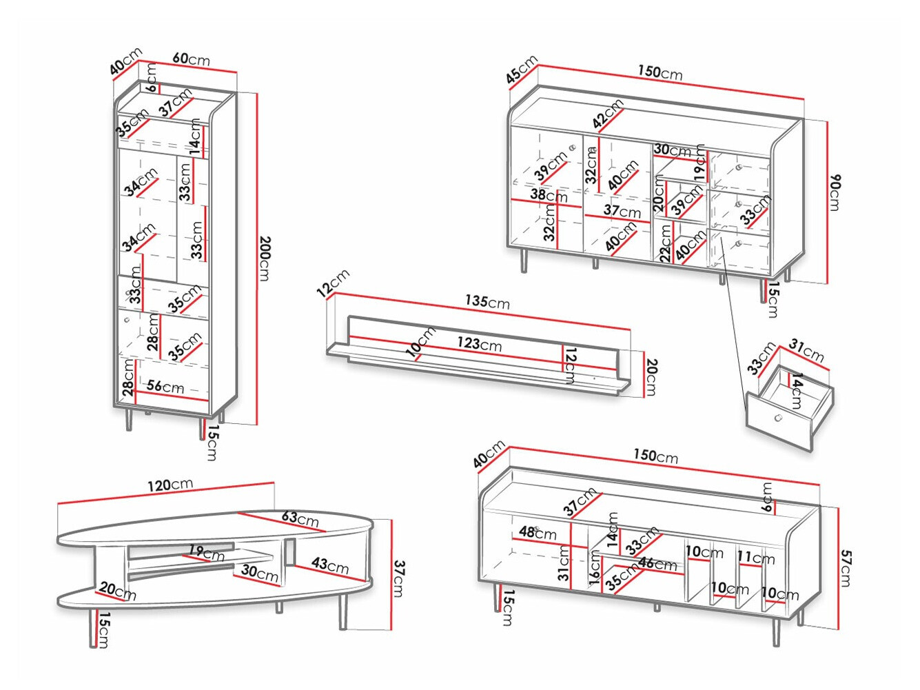 De meubels van de collectie hebben zowel open als gesloten opbergruimtes, zodat ze geschikt zijn voor het praktisch uitstallen van persoonlijke bezittingen. Het glazen gedeelte in de vitrines is gemaakt van gehard glas. De weerstand ervan is 5-6 keer hoger dan die van gewoon, thermisch onbehandeld glas. Dit type meubel is ideaal voor het tentoonstellen van decoraties, gerechten of foto's. Bovendien kan dit meubel worden geaccentueerd met LED-verlichting, die extra kan worden besteld. Bovendien zijn de vitrines universeel, zodat het mogelijk is om de openingsrichting van de deuren met glas tijdens de montage te bepalen.