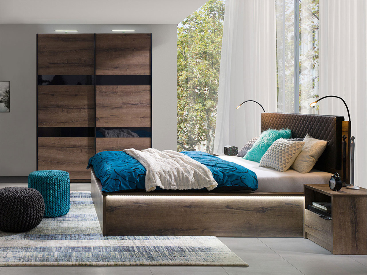 Slaapkamer set Fivelbo 119 (Klooster eik + Glanzend zwart)
