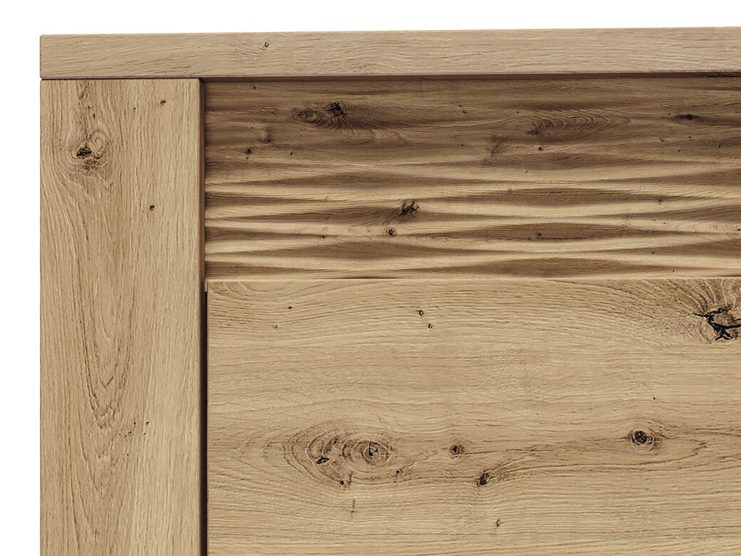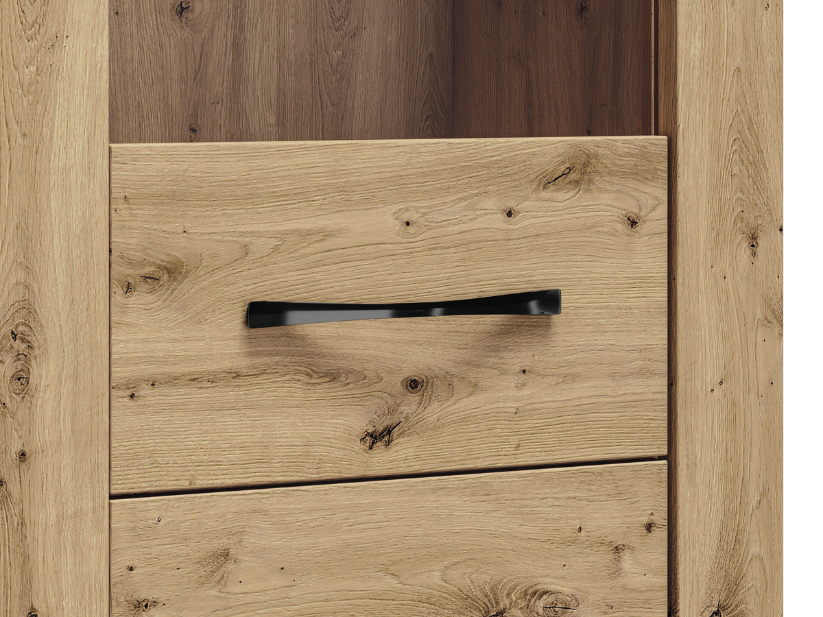 We beginnen gezellige momenten thuis steeds meer te waarderen. Thuis wordt een plek voor rust, werk en ontspanning. De op de natuur geïnspireerde collectie ziet er aantrekkelijk uit met de natuurlijke kleuren en details. Deze collectie is perfect voor wie meer gezelligheid in huis wil creëren. Eenvoudige lijnen en een eikenhouten kleur vormen een exclusief duo. Misschien is deze collectie waar je naar op zoek bent? De gevels van de meubels zijn bedrukt met houten patronen, die de collectie uniek maken. De metalen handgrepen benadrukken het exclusieve ontwerp van de meubels. De decoratieve ornamenten geven het extra karakter, die worden geaccentueerd door LED-verlichting die in de gevels van de meubels is ingebouwd. Ook voor de vitrines heb je LED-verlichting als optie, waardoor de details van het interieur worden benadrukt. "Artisan" eiken gevels, gehard glas, LED-verlichting en metalen handgrepen maken de collectie uniek. Alles wordt gevormd door de perfect benutte ruimte in de meubels. Zo kun je al je belangrijkste spullen netjes opbergen.