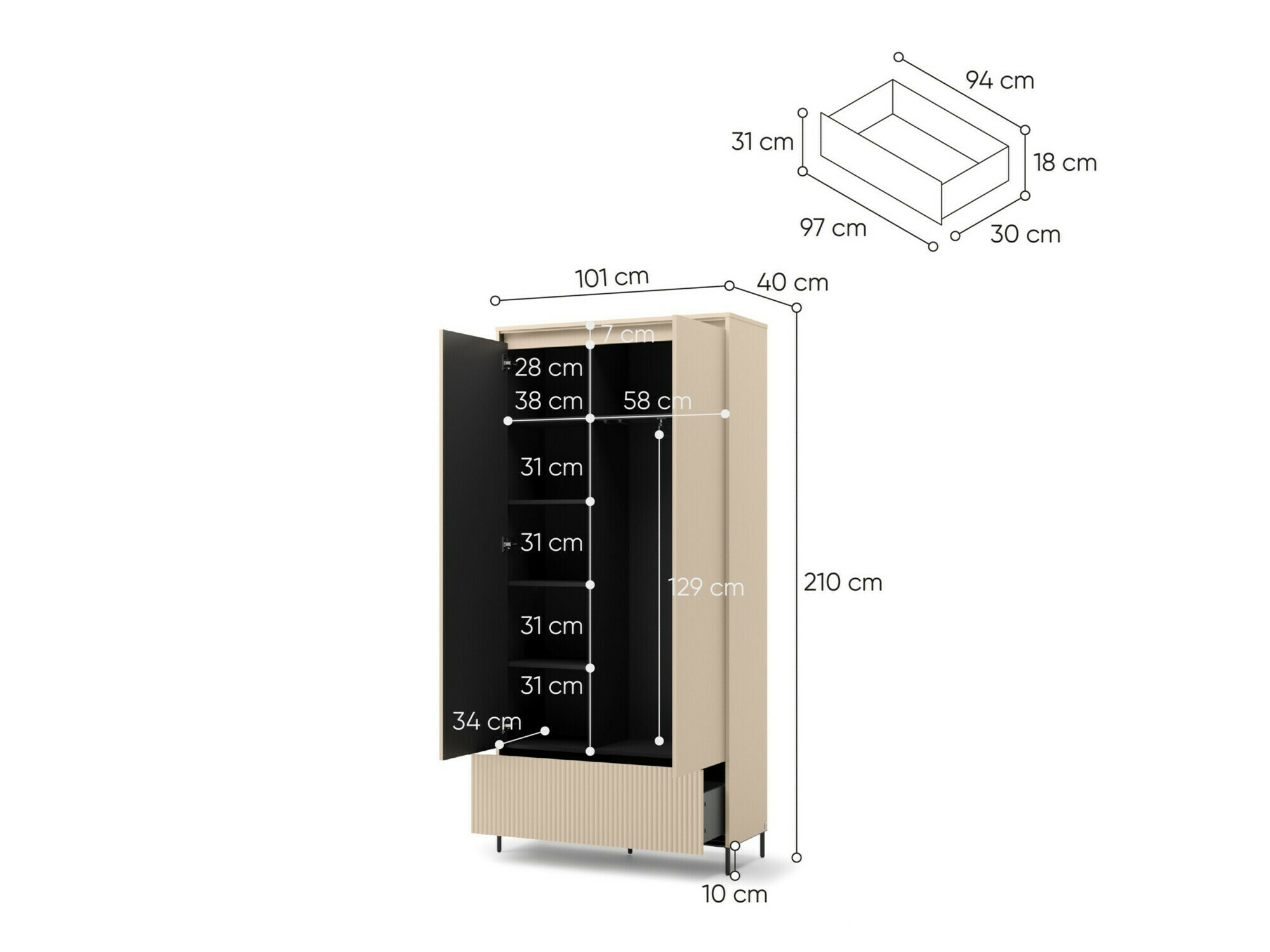 Afmetingen kledingkast: