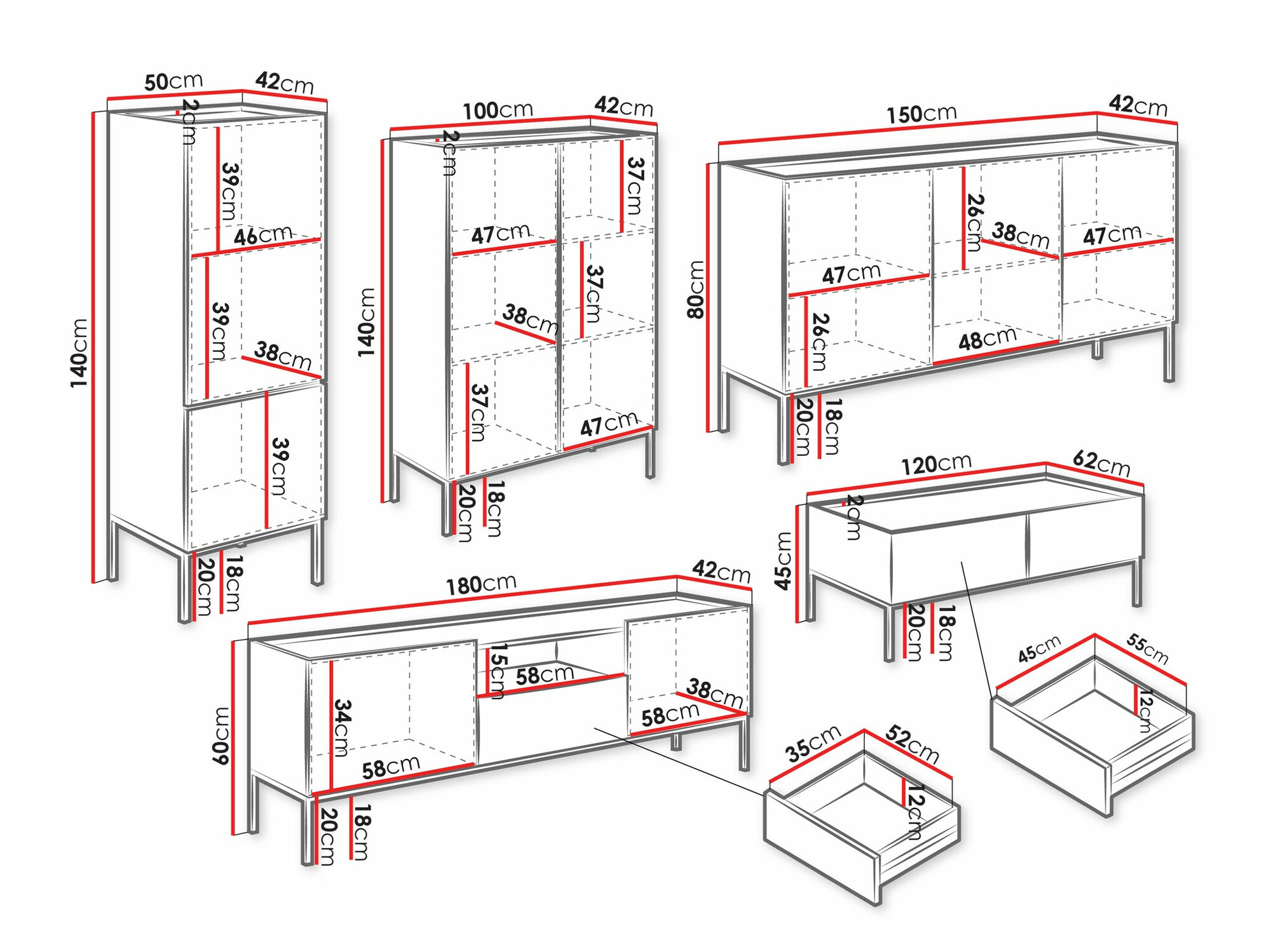 Woonkamerset Lunole 110 (Artisan eiken + Zwart)