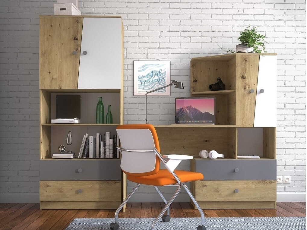 Boekenkast Mirelbu 103 (Artisan eiken + Glanzend wit)